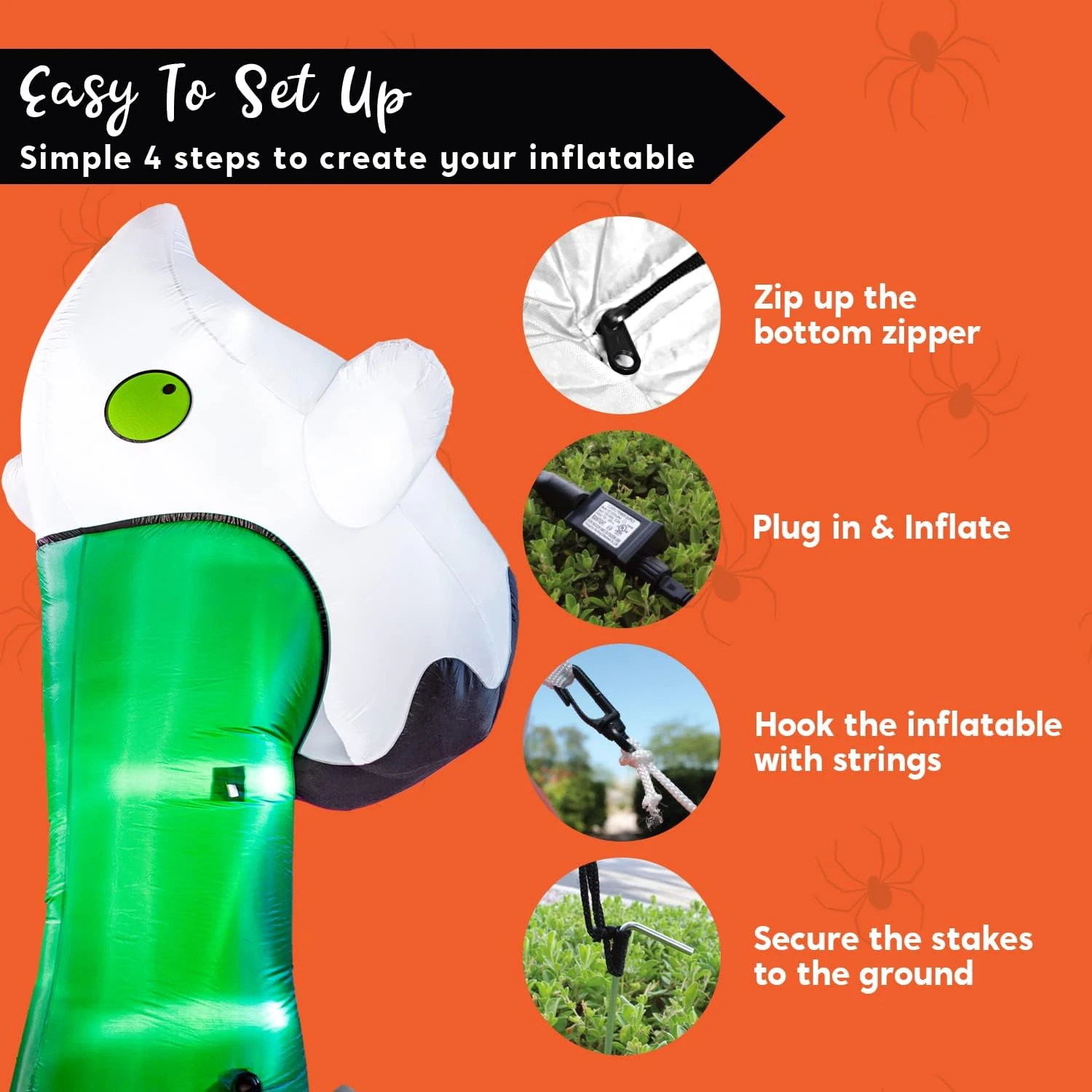 - Our 10 feet tall scary throwing up Halloween Inflatable ghost comes with extended cords, ground stakes, fastened ropes, built-in sandbags, and a plug with UL certification.
