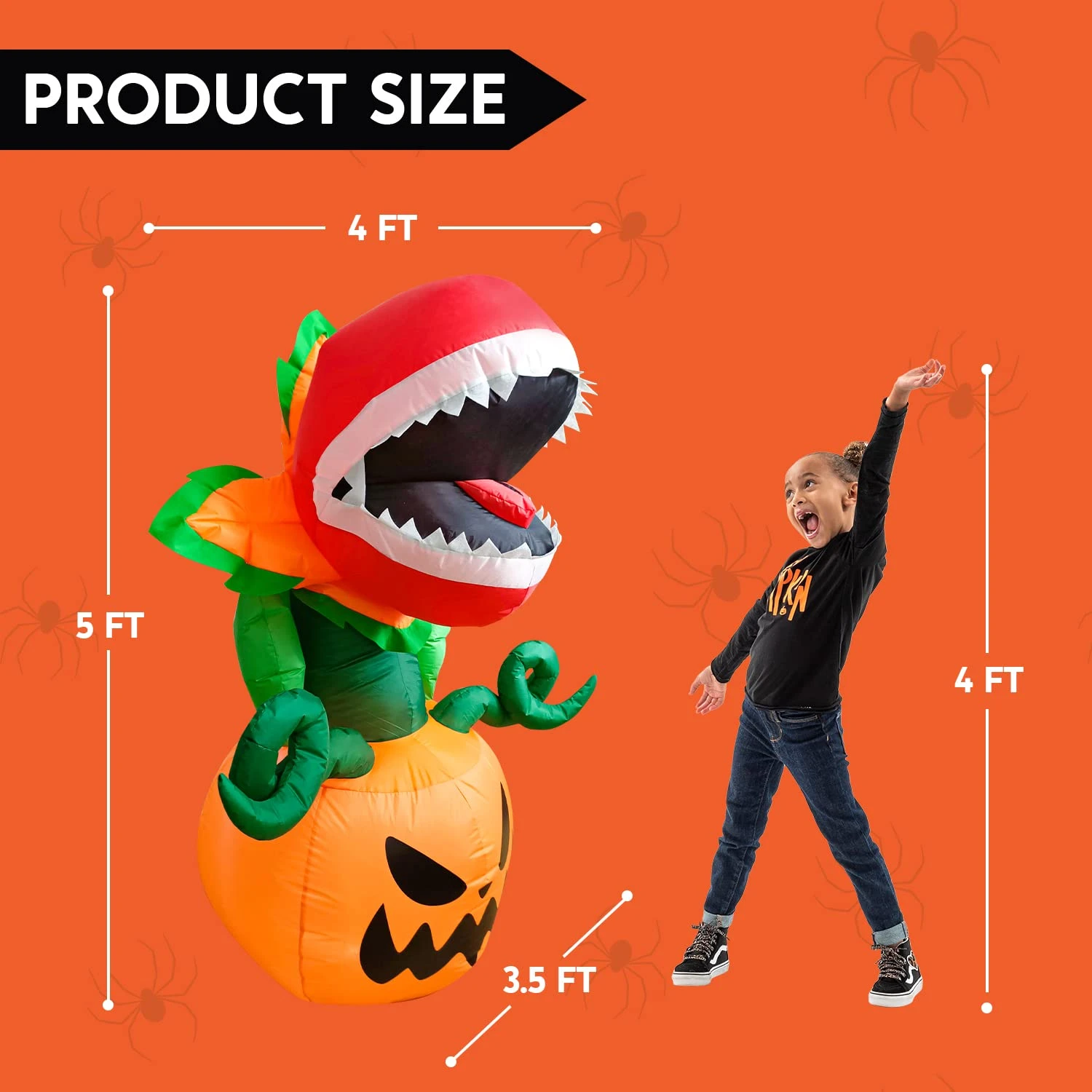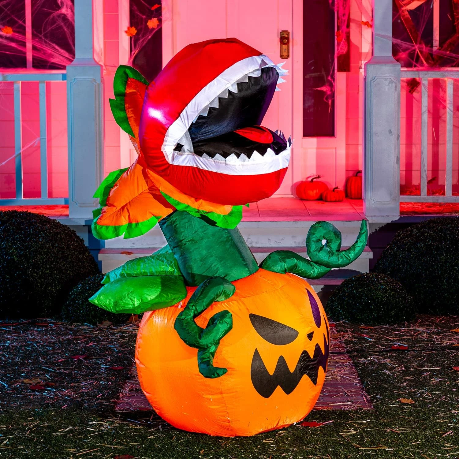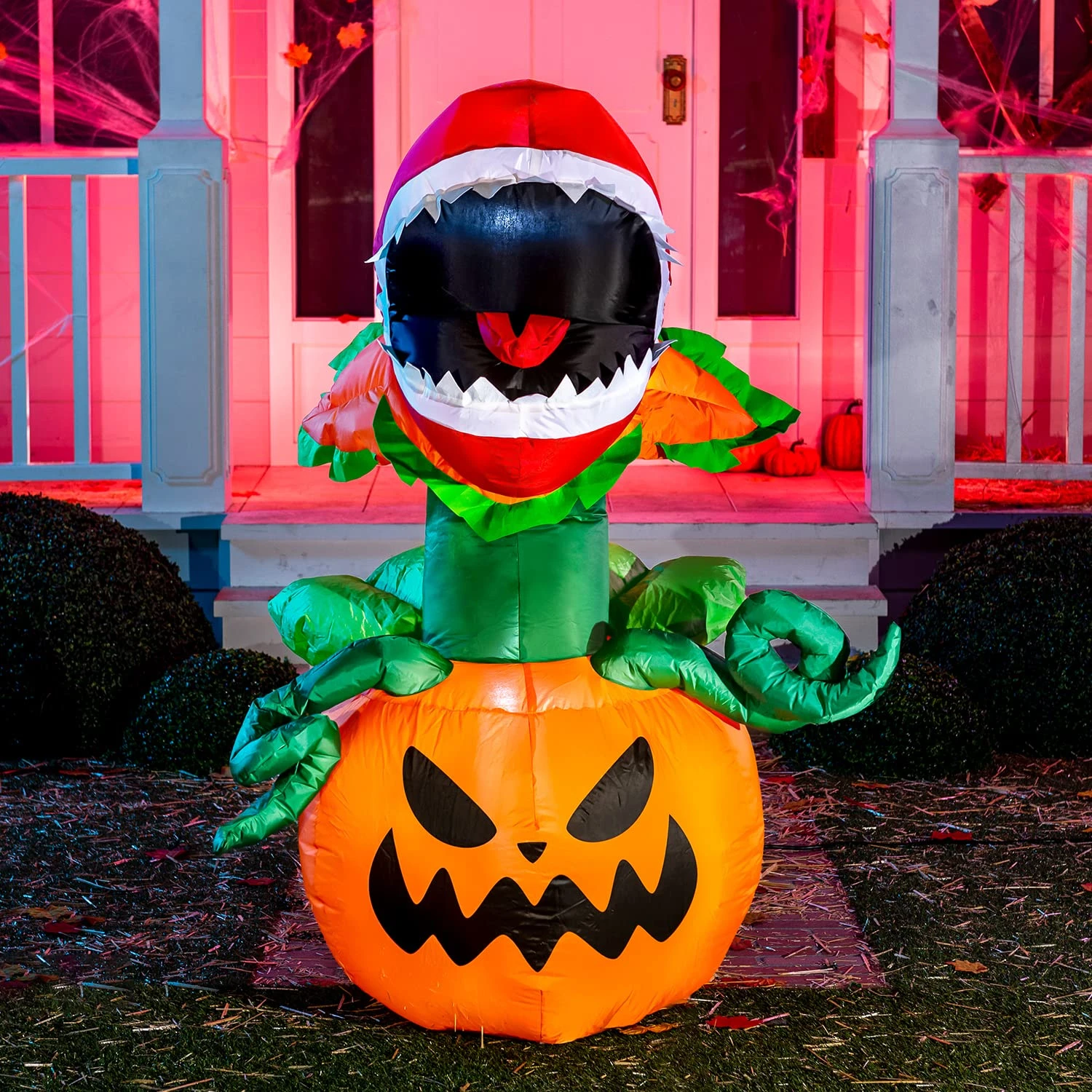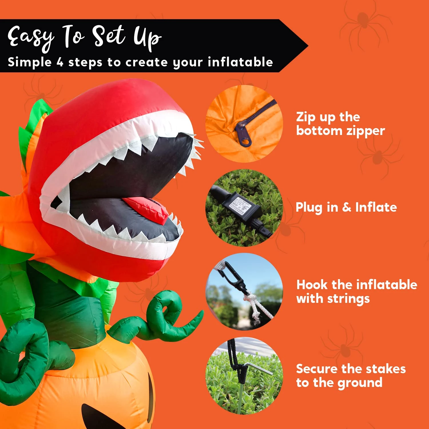 - Our 5 feet tall piranha flower halloween inflatable comes with extended cords, ground stakes, fastened ropes, built-in sandbags, and a plug with UL certification.