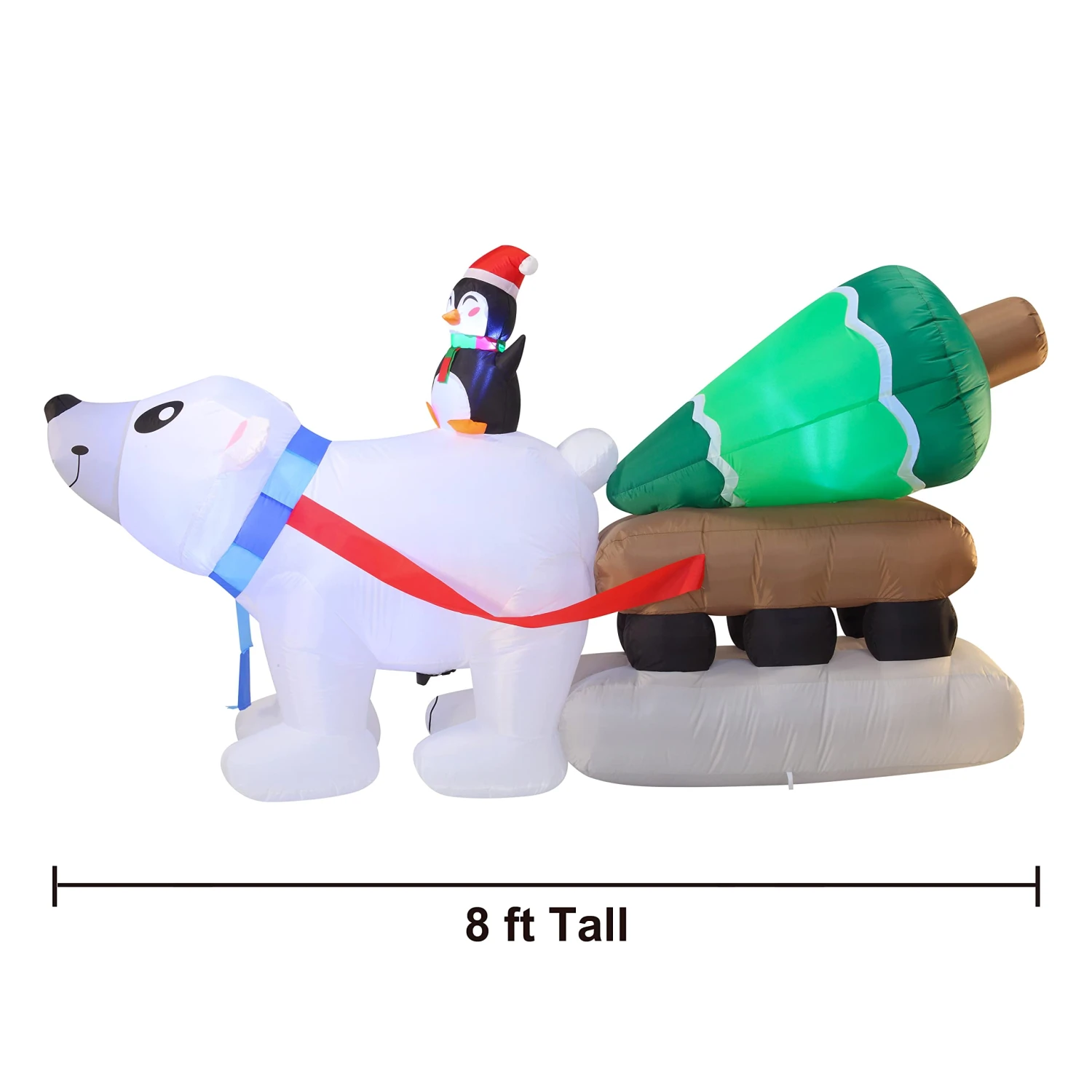8ft Inflatable Polar Bear Dragging A Christmas Tree