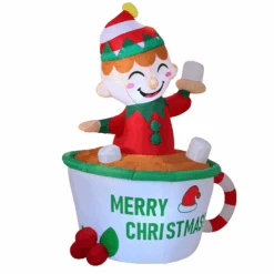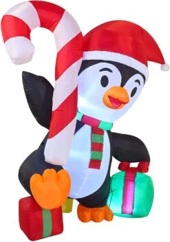 6 FT Tall Inflatable Gingerbread With Penguin Christmas Inflatable With Build-in LEDs