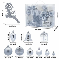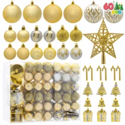 66ct Assorted Christmas Ball Ornaments With Tree Topper – Gold & Silver