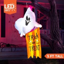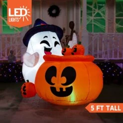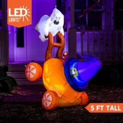 5ft Halloween Ground Breaker Skeleton Holding Head Inflatable