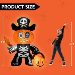 5ft Halloween Ground Breaker Skeleton Holding Head Inflatable