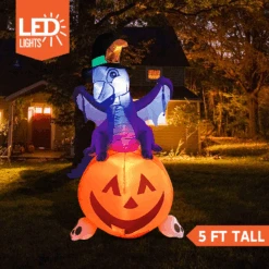 Tall Animated Halloween Kitty Cat On Pumpkin Inflatable (5 Ft)
