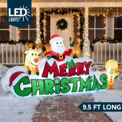 Giant Merry Christmas Sign With Tree & Gingerbread Man Inflatable (10 Ft)