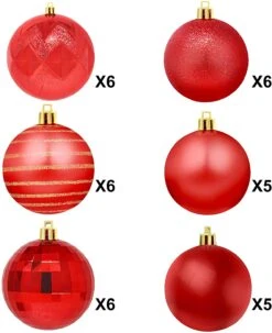 3.15” Christmas Transparent Ball Ornaments With Red And Gold Print 12 Pcs