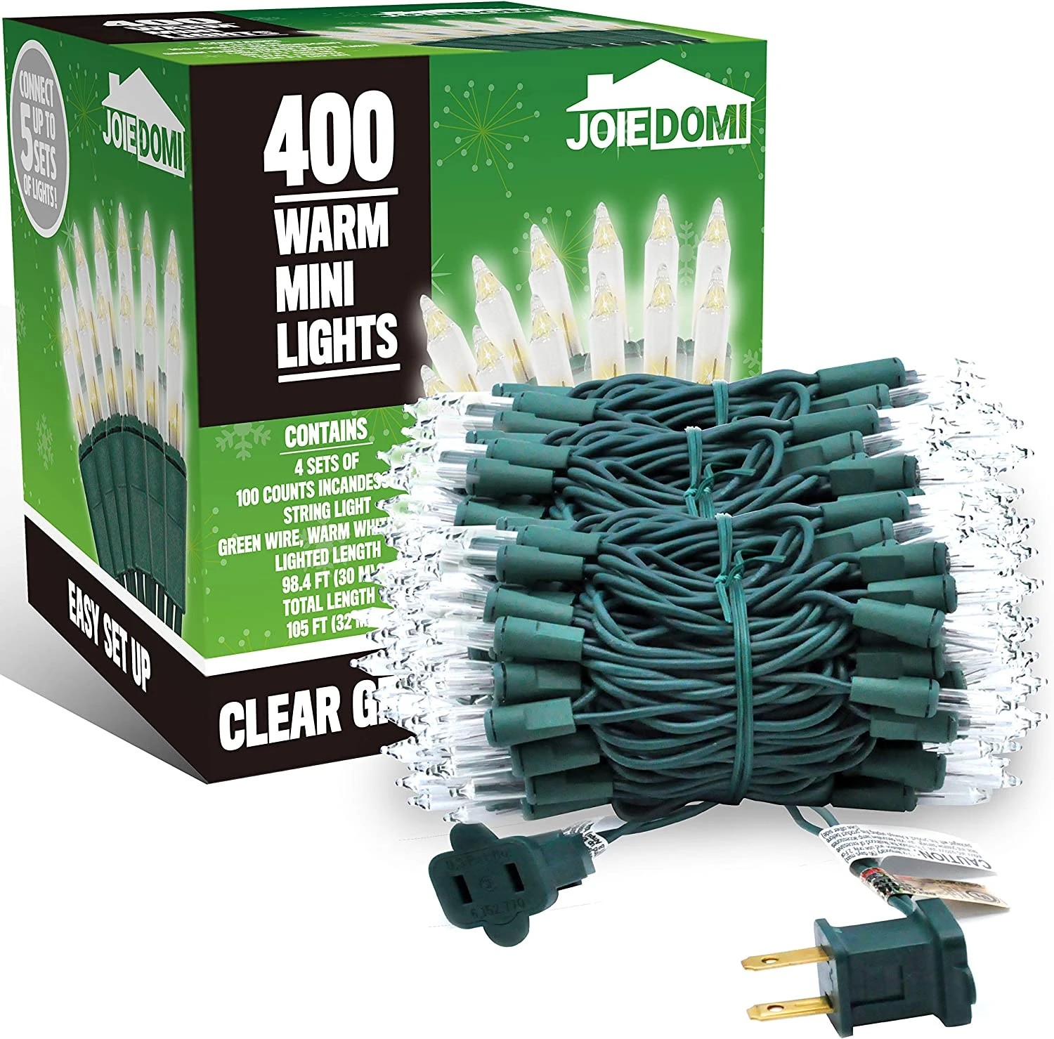 - GREAT XMAS DECORS: Light up the upcoming Christmas with warm white lights through Set of 4, 100 count Joiedomi 24.7 ft (7.5m) string lights. Each set comes with 2 Extra Bulbs & 2 Replacement Fuses