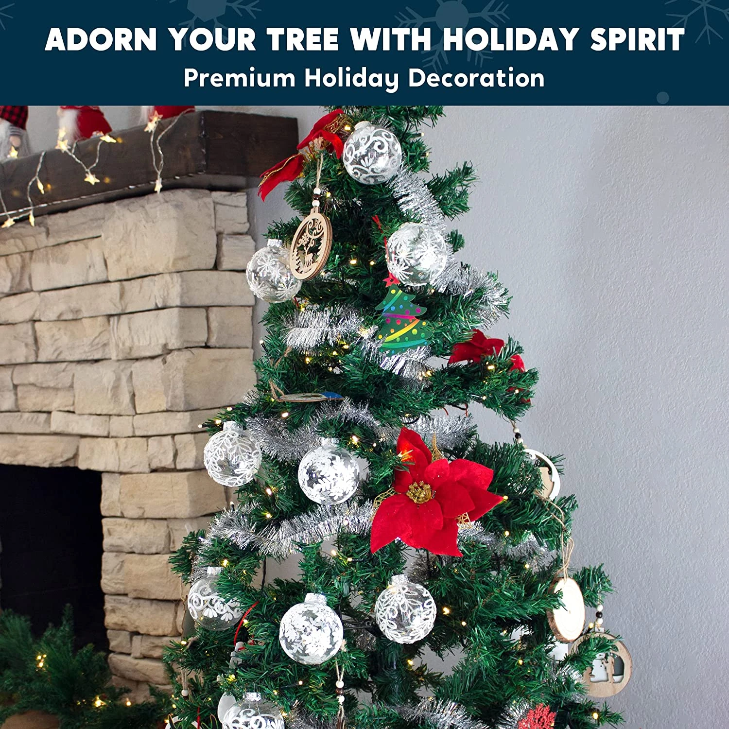 - Our Fantastic White & Clear Christmas Decorations includes 12 pcs Clear Christmas Ball Ornaments Set of 3 Swirls Balls, 3 Small Snowflake Balls, 3 Big Snowflake Balls, 3 Leaf Vine Balls. Perfect for indoor and outdoor decorations.