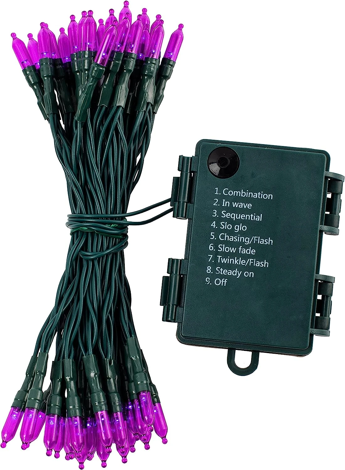 17.3 Ft Battery Operated 50 Counts Purple LED String Lights