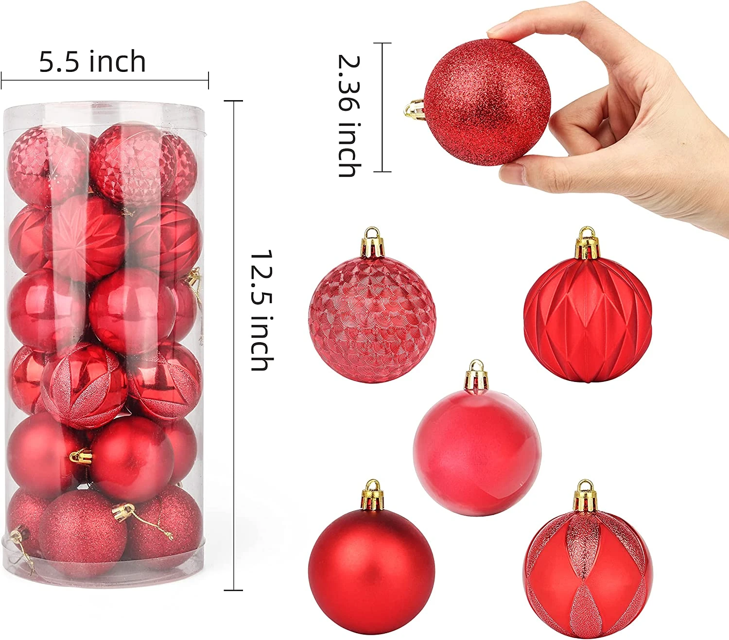 2.36″ Red Christmas Ball Ornaments 24Pcs
