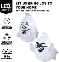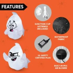 - Our 3 Feet Tall mischievous window crasher ghosts naughty halloween inflatables comes in a 2 pack set with an extended cord, fastened ropes,screw sucker and a plug with UL certification.