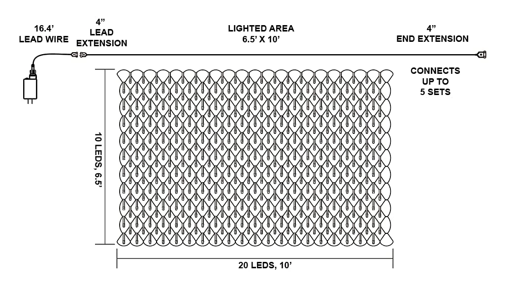 - Our Halloween LED Net Lights have a total of 200 LED Orange & Purple F5 Bulbs with Black Wire. 8.4W 30V. Lighted Area of 65 (6.5×10) Square Feet. Low Voltage.