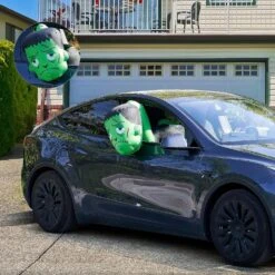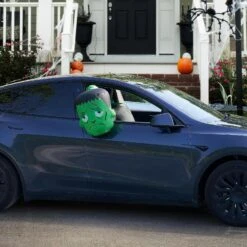 - Excellent Design. This 3.6 ft Halloween inflatable green zombie decoration features a creative and eye-catching design and adds a spooky and fun element to your Halloween car decorations. This inflatable comes with an extended cord, fastened ropes, built-in sandbags, and a car plug with UL certification.
