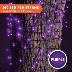 - Our Halloween Lights include 300-count purple LED green wire string lights with 8 modes. Each set’s total length is 108.6 feet and it has 3.93 inches of spacing. The bulb’s diameter is 5mm and its height is 8mm.