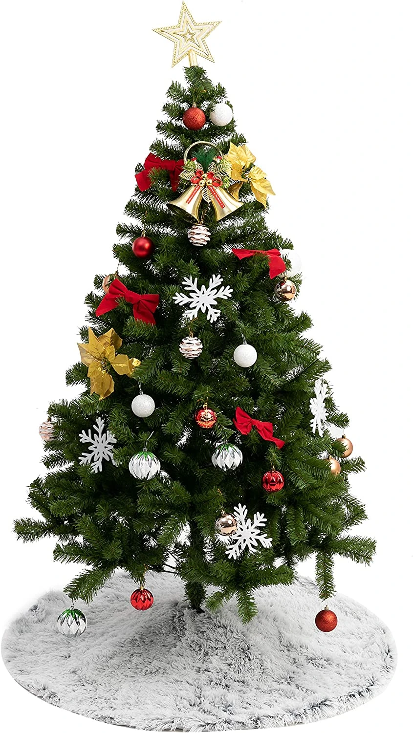 - UNIQUE DESIGN- JOYIN Deluxe Christmas Faux fur Tree Skirt was selected from superior material and made with soft plush to create a dense fur tree skirt which adds a cozy feeling to your house.