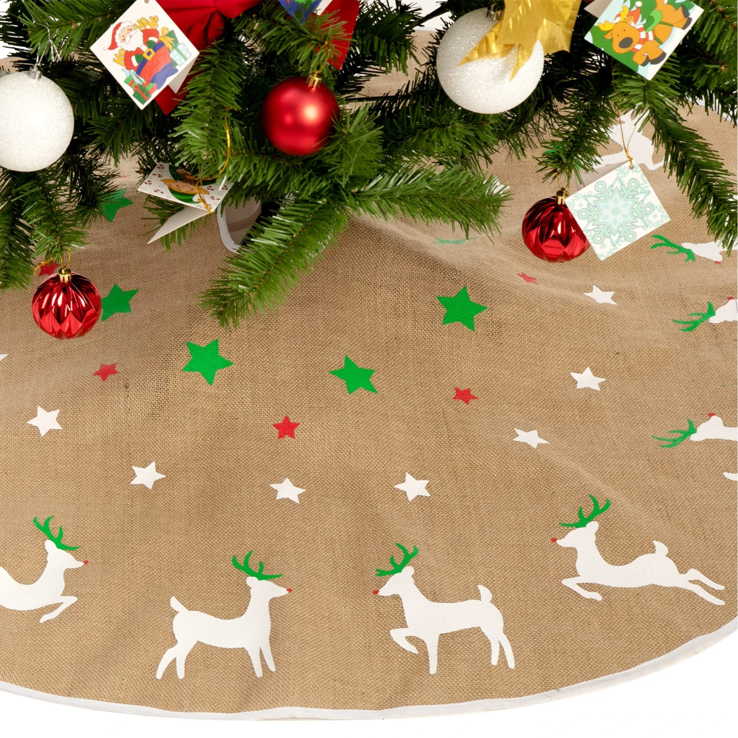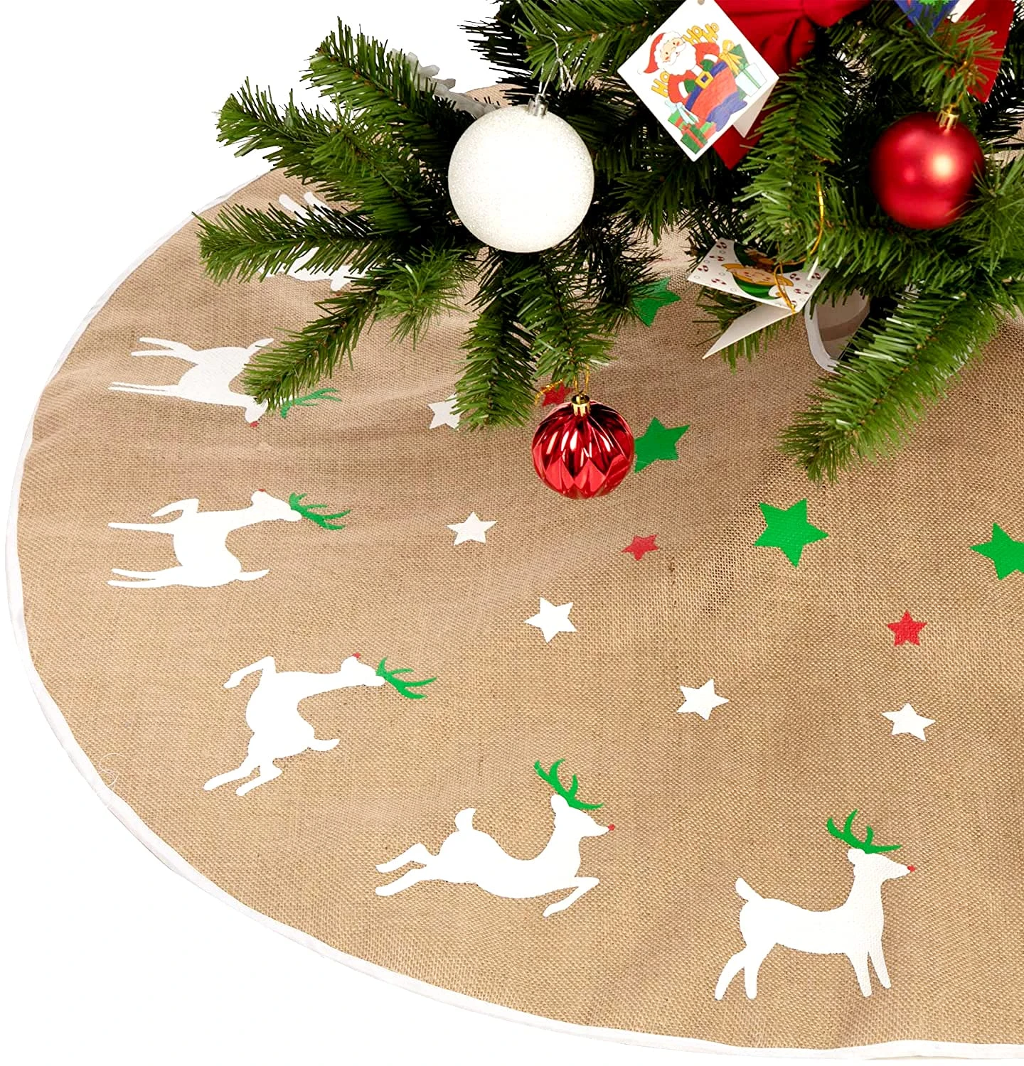 - BEST CHRISTMAS DECORATION – Bring holiday cheer to your house with JOYIN Burlap Tree Skirt with Reindeer Design