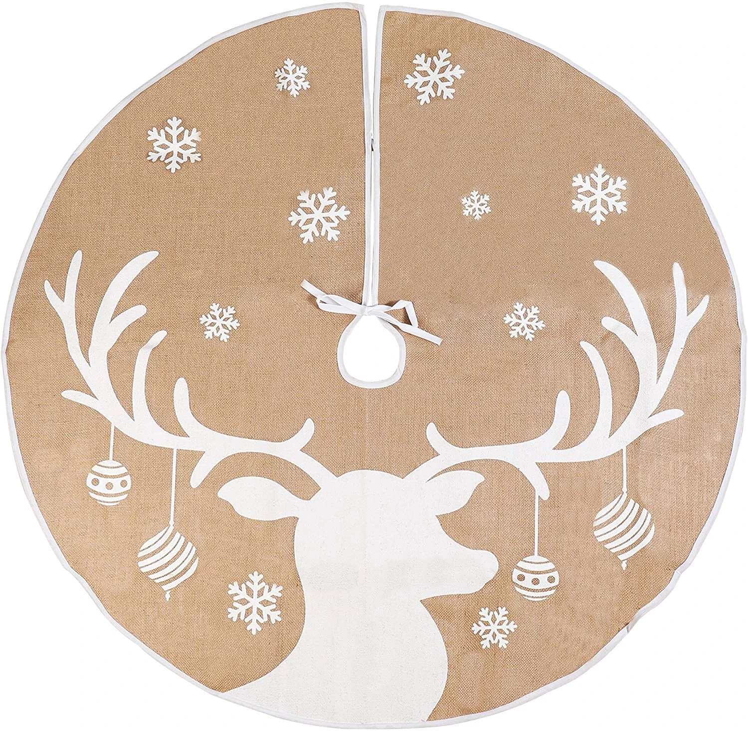 - Great tree décor: create great Christmas memory with Joiedomi burlap reindeer Christmas tree skirt