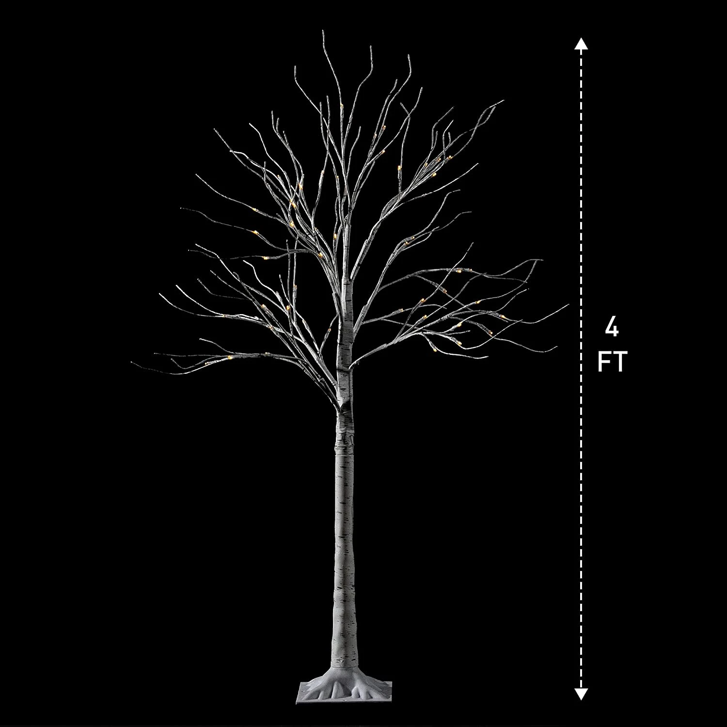 - Our Decorative Holiday Tree includes 4 feet White Birch Tree Decoration with 64 LED Lights.