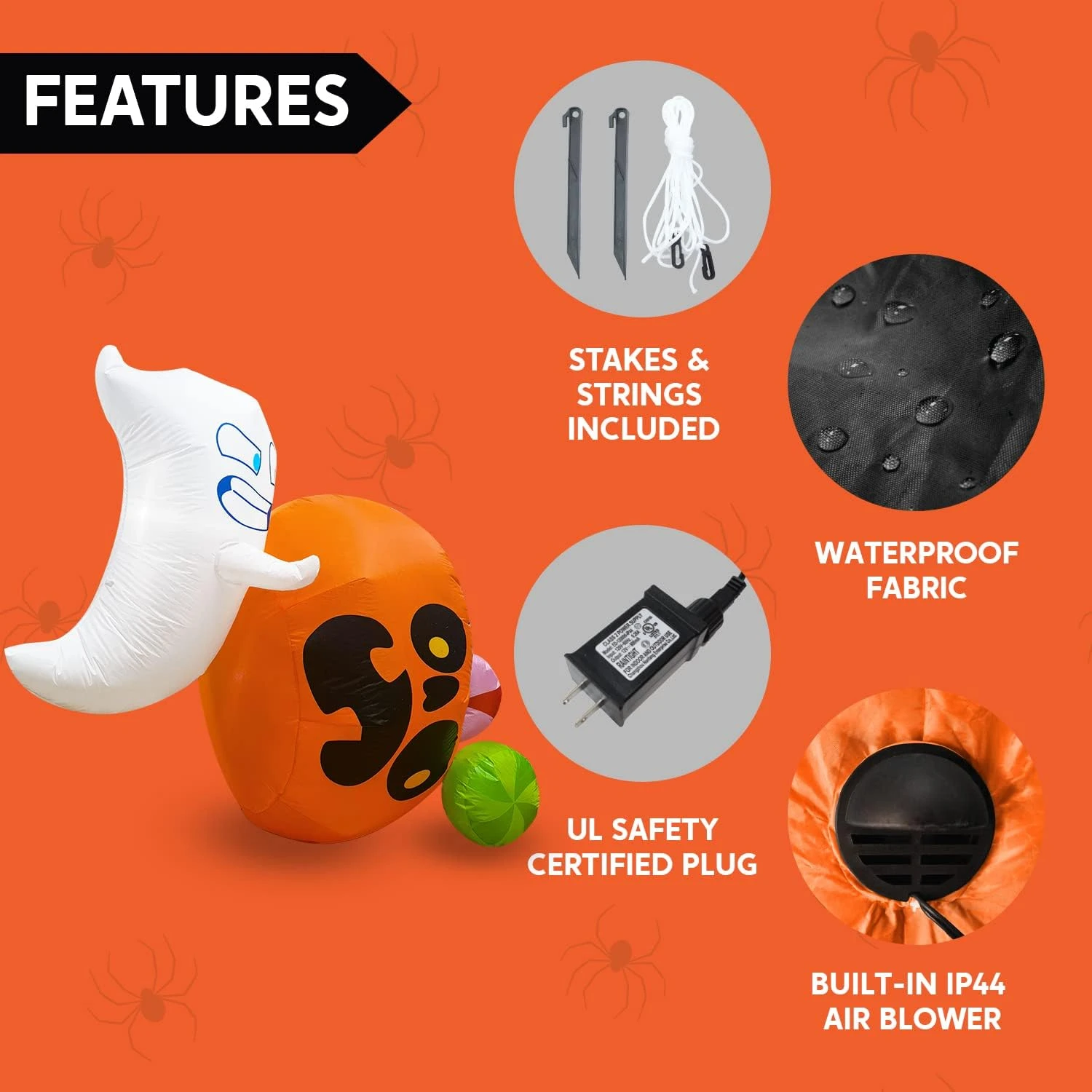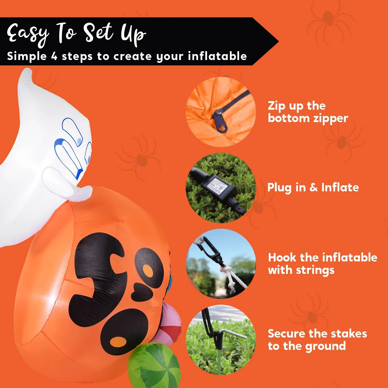 - Our Joiedomi 5 Feet Tall Cute Naughty Ghost Inflatable comes with an extended cord, ground stakes, fastened ropes, built-in sandbags, and a plug with UL certification. You can match other inflatable outdoor decorations with our ghosts inflatable to create a happy night.