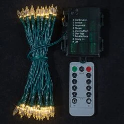 - Our battery-powered string lights pack includes 50 count clear white led string lights with a green wire and remote control. It got a total length of 17.3ft, 4 inches intervals between the led bulbs, and a bulb size of 3mm*16mm.