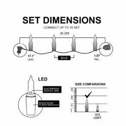 - Our Christmas lights set includes 2 sets of 100 counts of always-on holiday orange-LEDÂ string lights. Each set lighted 26.25 feet in length and 100 count super bright orange LEDs.