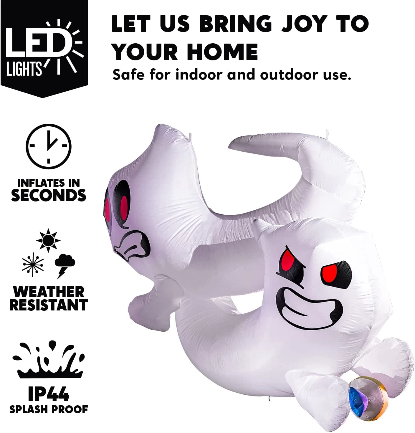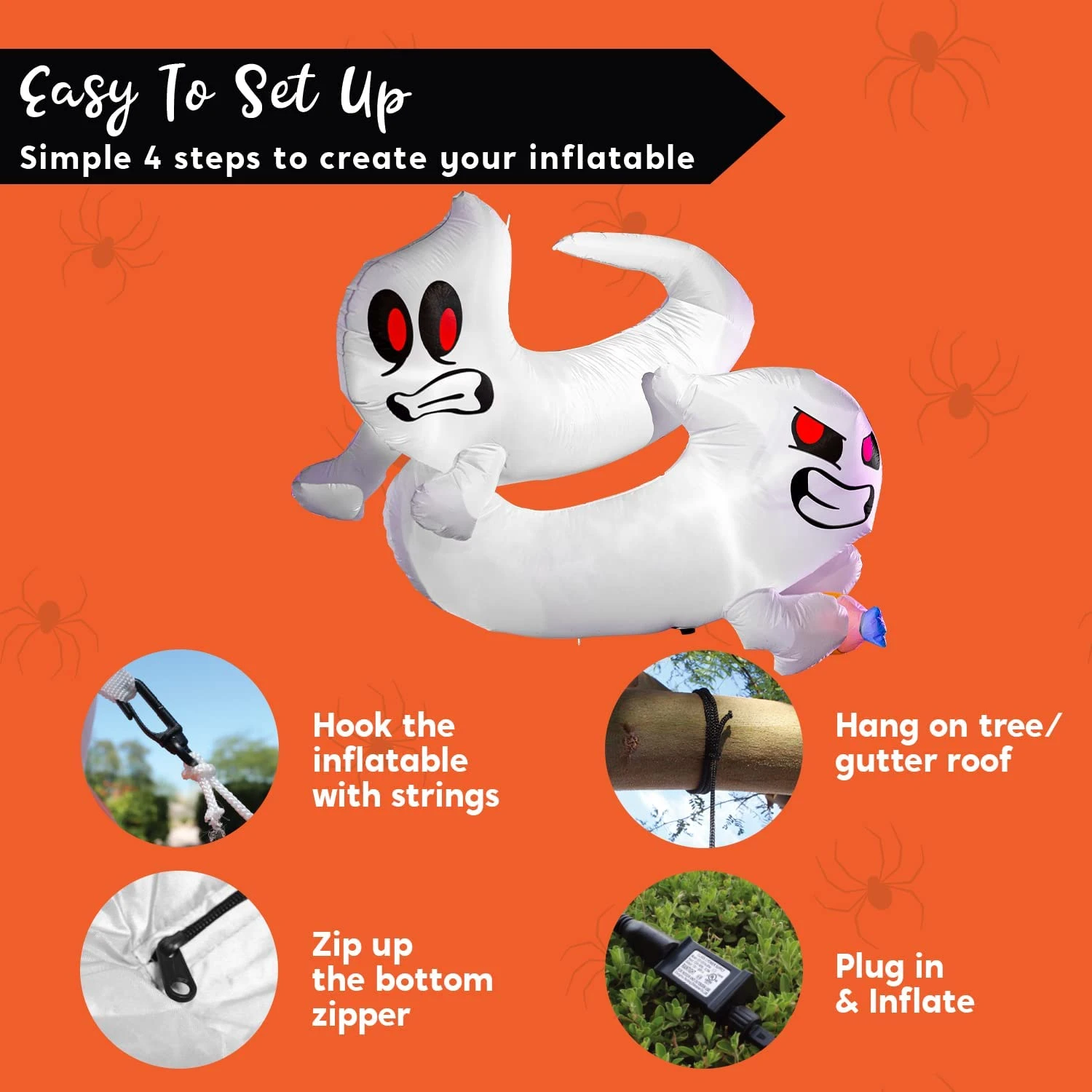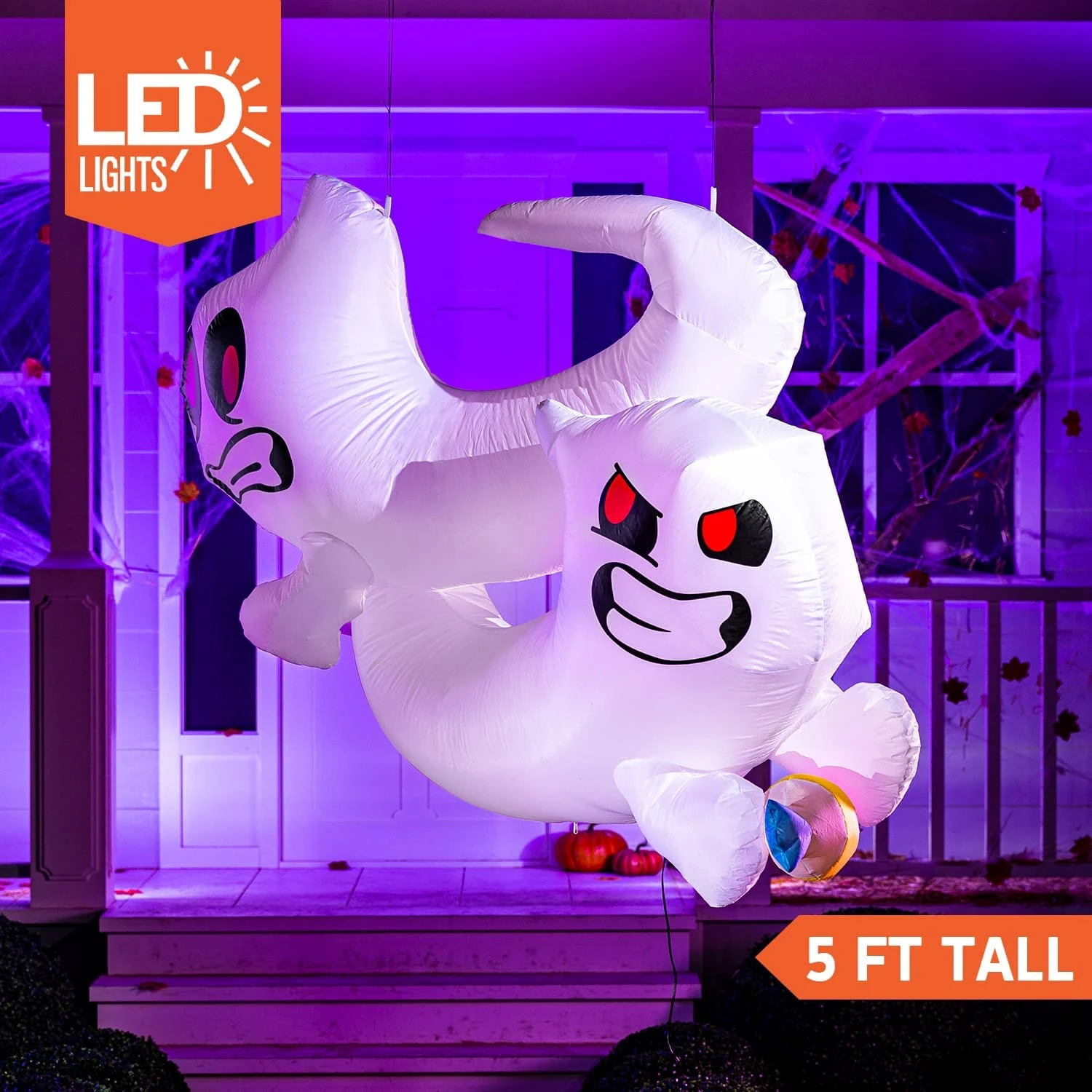 - Our 5 FT tall wicked hanging ghost fighting for candy, ghost inflatable with Build-in LED comes with fastened ropes, built-in sandbags and a plug with UL certification.