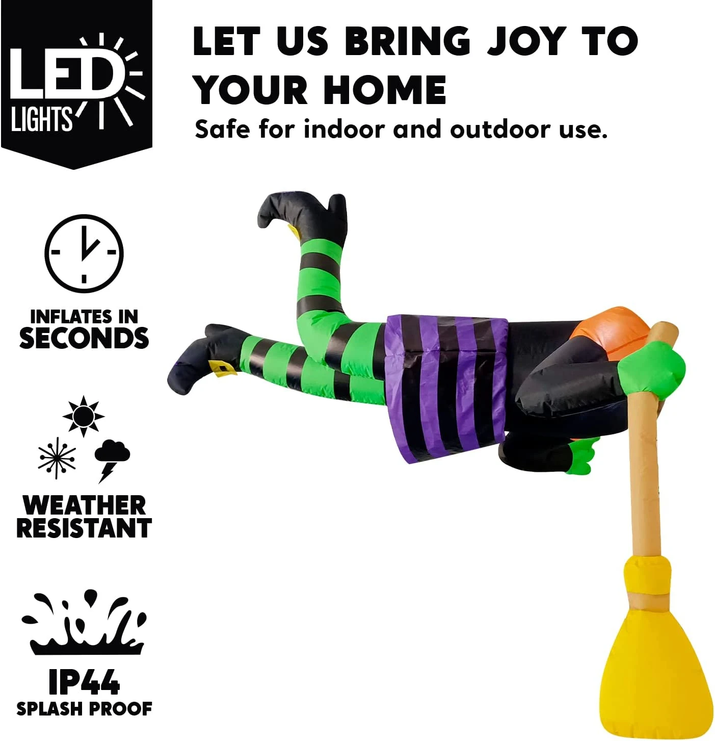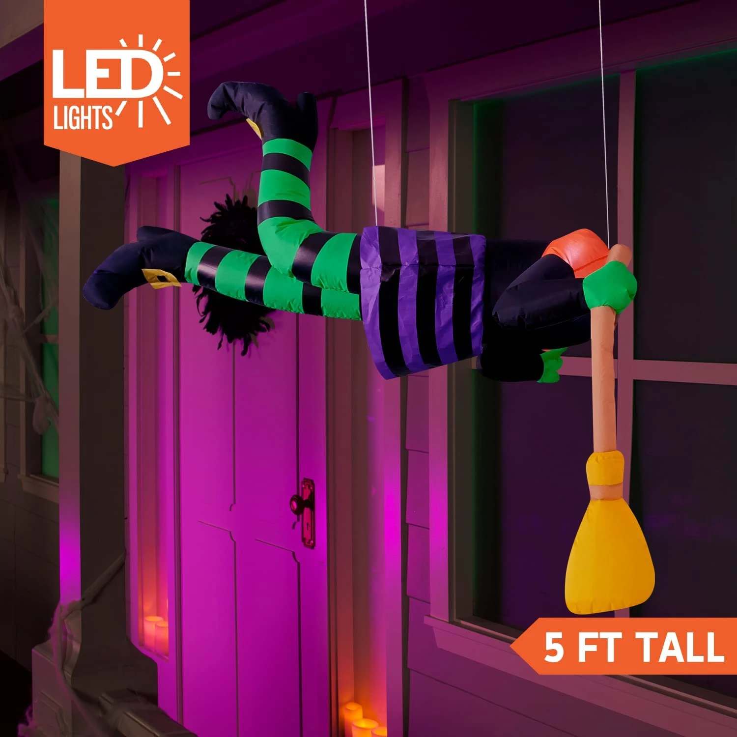 - Our 5 Feet long crashing witch stuck in tree hole halloween inflatable comes with extended cords, fastened ropes, and a plug with UL certification.