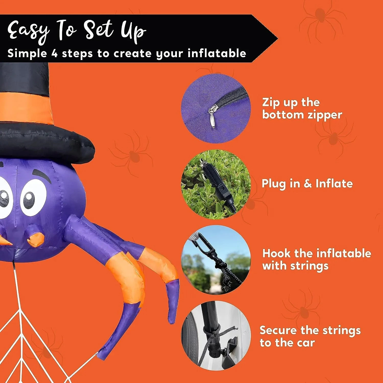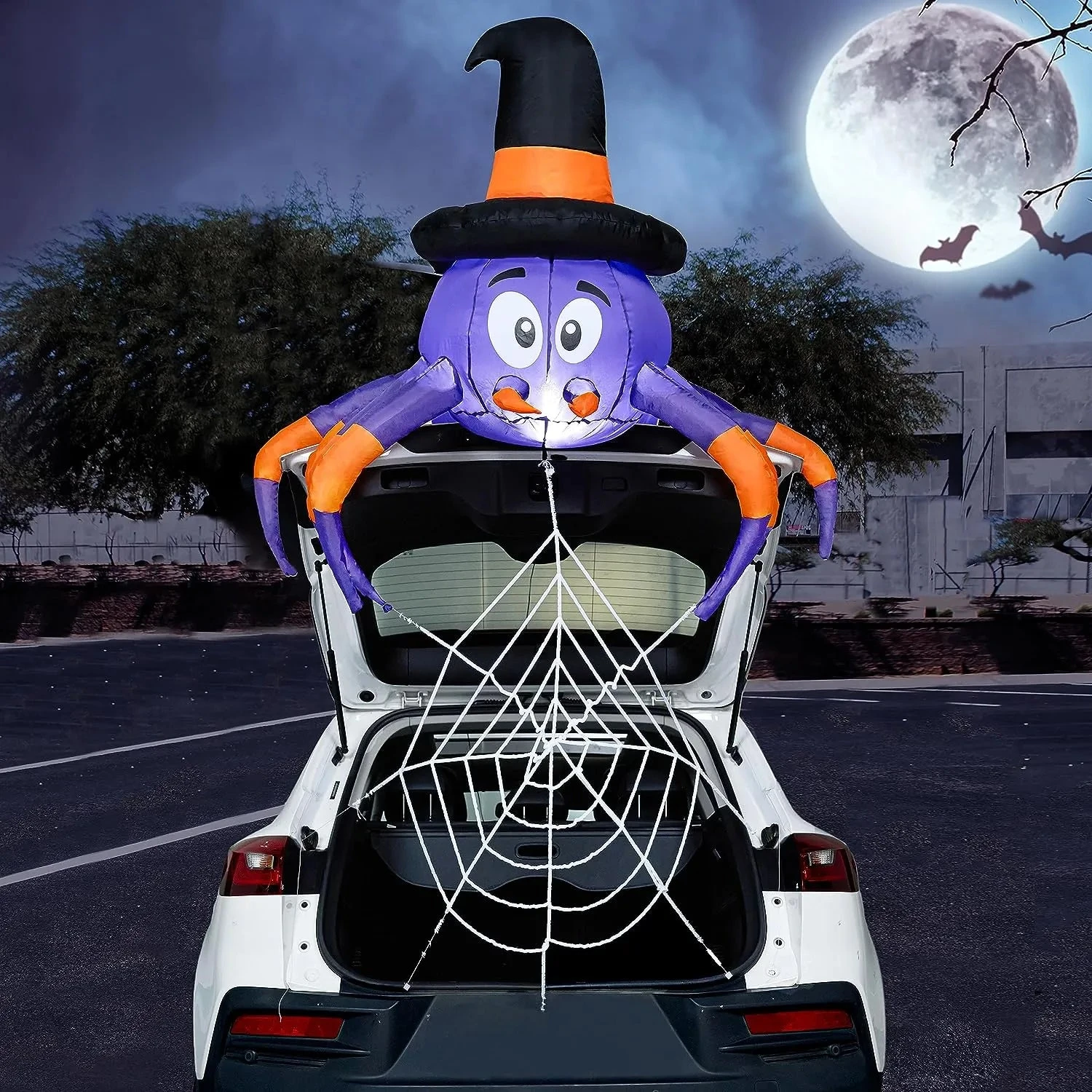 - Excellent Design. This 5ft Halloween inflatable spider decoration features intricate details and lifelike spider webs, creating a spooky atmosphere for your car trunk. This inflatable comes with an extended cord, fastened ropes, built-in sandbags, and a car plug with UL certification.