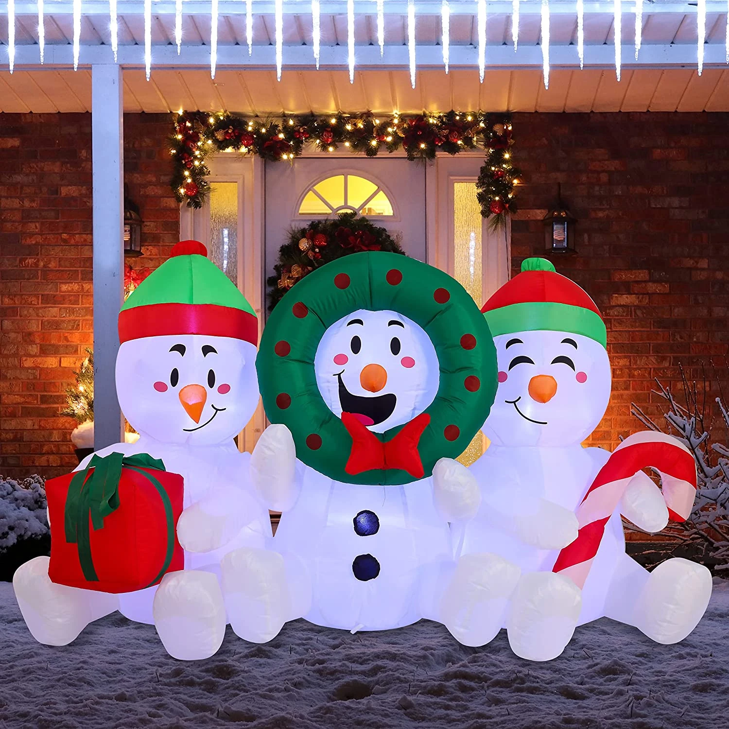 6 FT Long Inflatable Three Sitting Snowmans