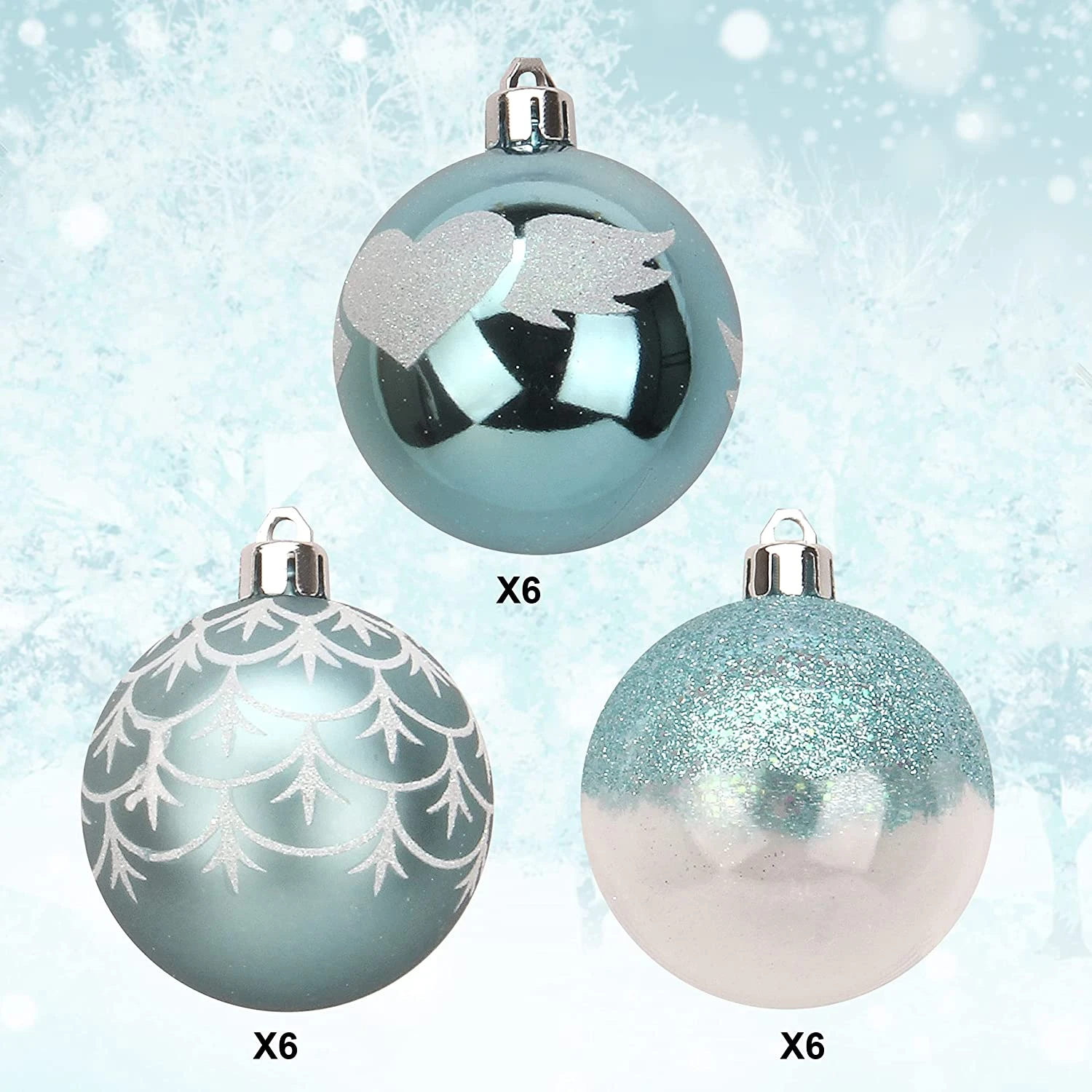 6CM Christmas Ornaments With Gradient Baby Blue, 18 Pcs