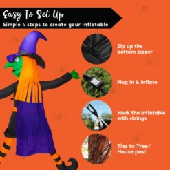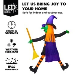- Our 6 Feet tall crashing witch flying safely Halloween inflatable comes with extended cords, fastened ropes, and a plug with UL certification.