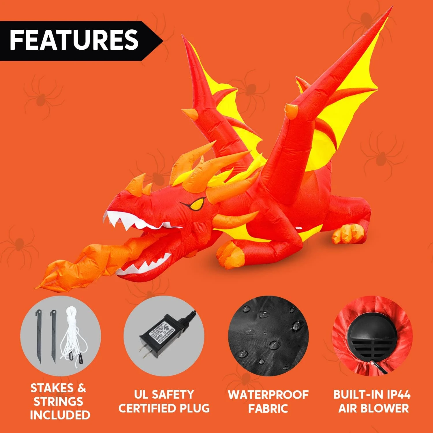 - Our 6 feet tall fire dragon inflatable comes with extended cords, ground stakes, fastened ropes, built-in sandbags, and a plug with UL certification.