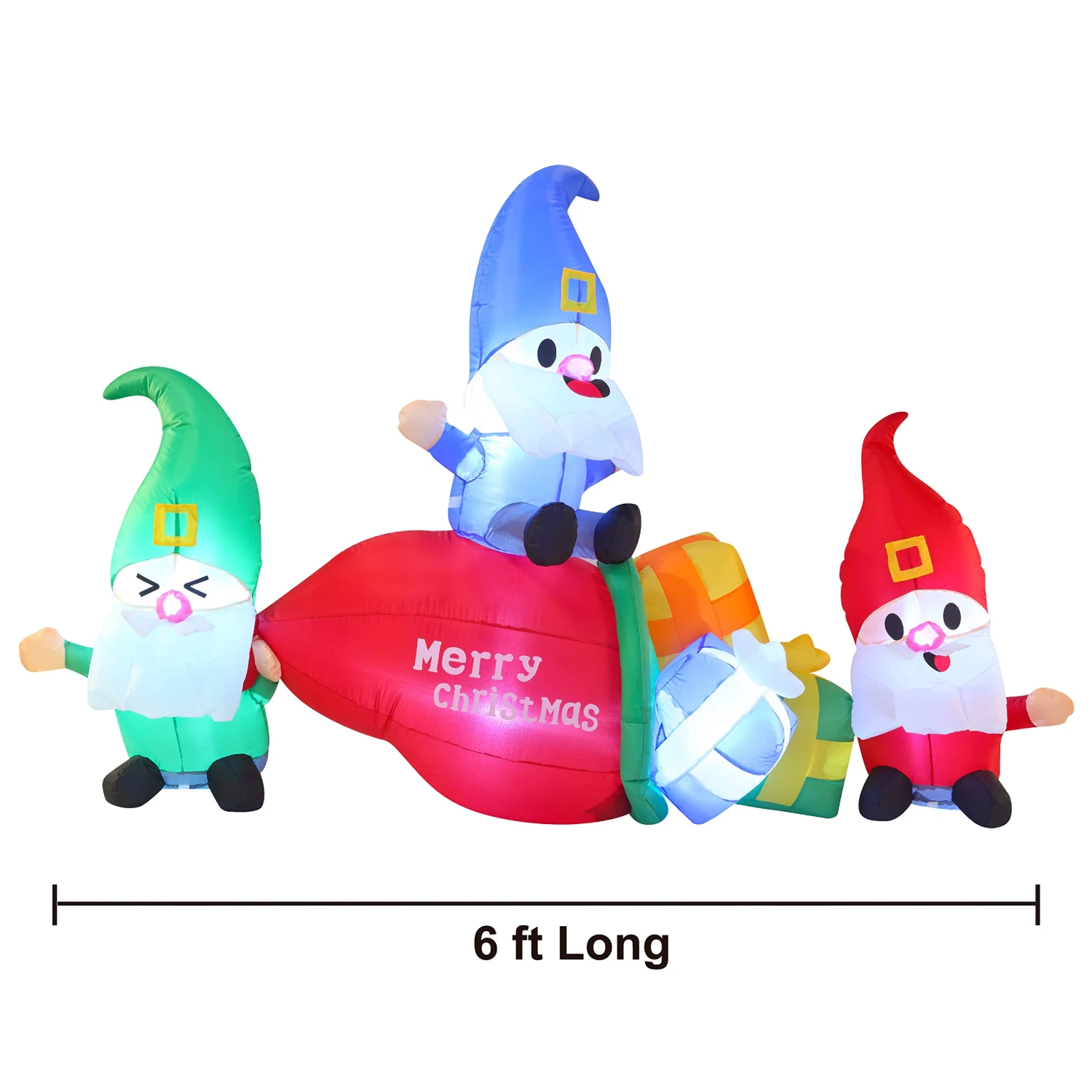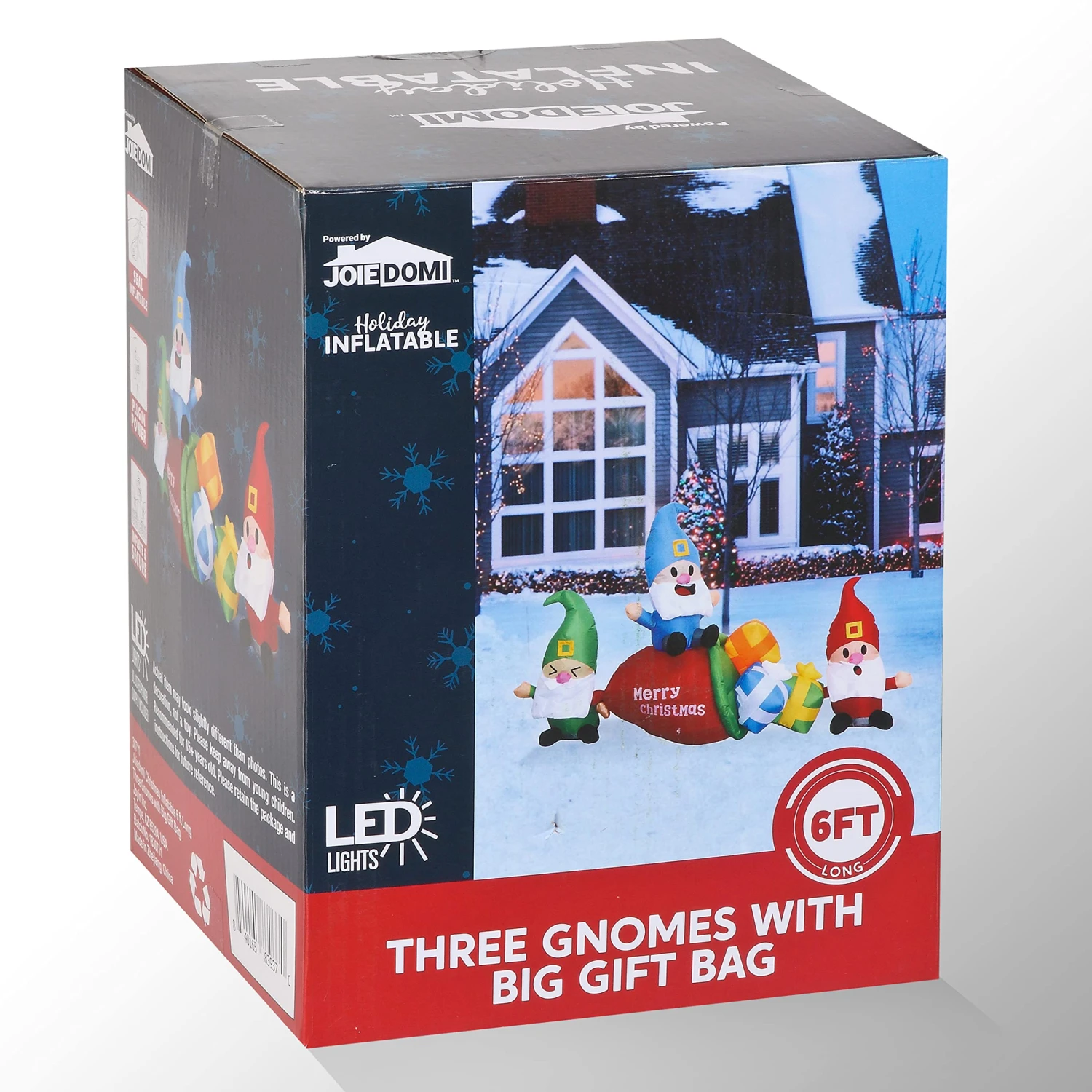 6ft Inflatable Three Gnomes With Big Gift Bag