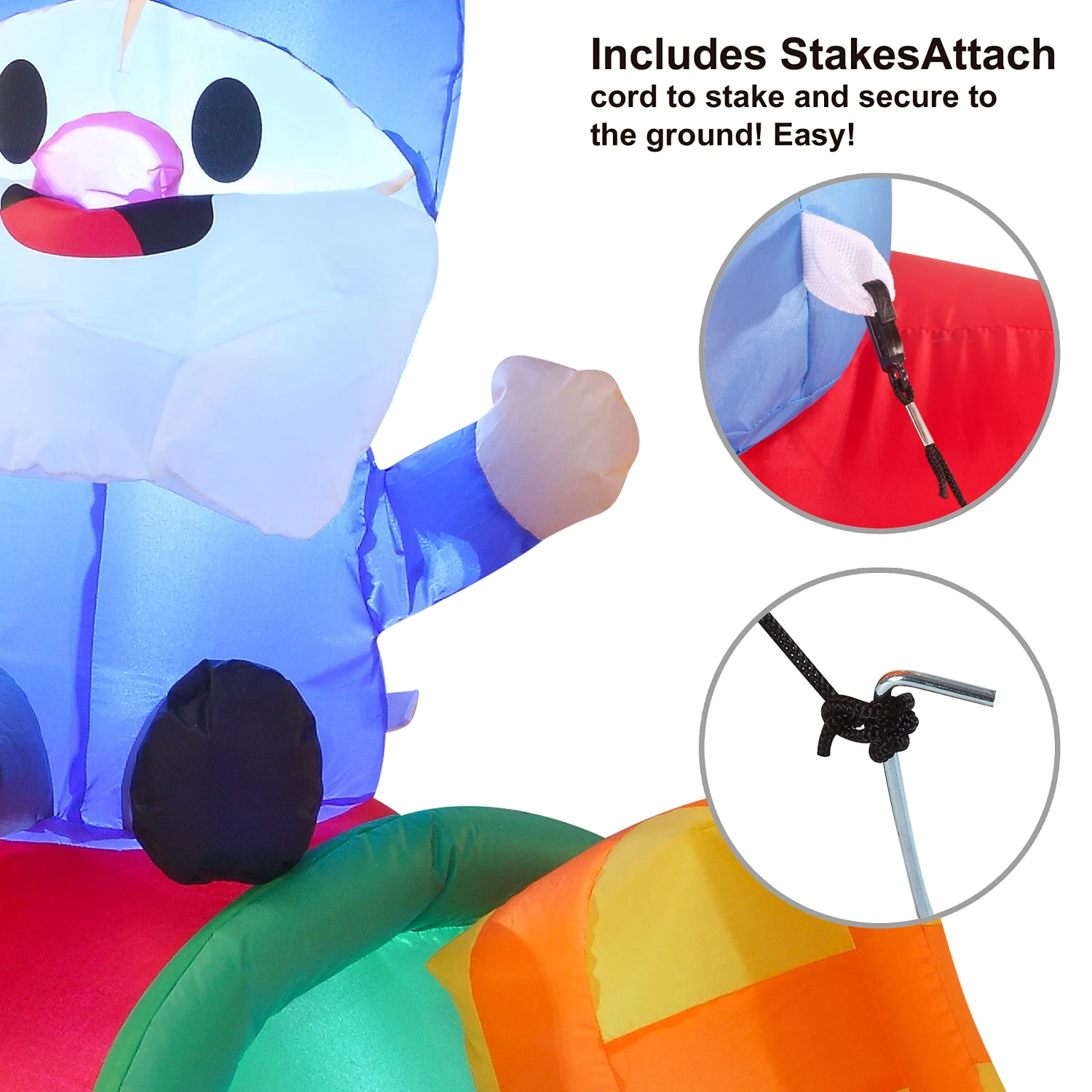 - 6 Feet Long Gnomes Gift Inflatable comes with an extended cord, ground stakes, fastened ropes, built-in sandbags, and a plug with UL certification.
