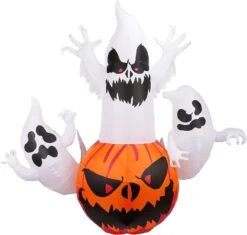 - Our blow-up pumpkin with 3 ghost themed decor stands at 6ft. This has LED light inside making it appealing and eye-catching,it is the most unique and lovely Halloween outdoor decorations. It can be used for indoor parties, or in courtyards, front doors and gardens.