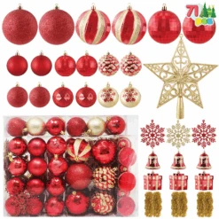 71ct Assorted Christmas Tree Ornaments – Red & Gold