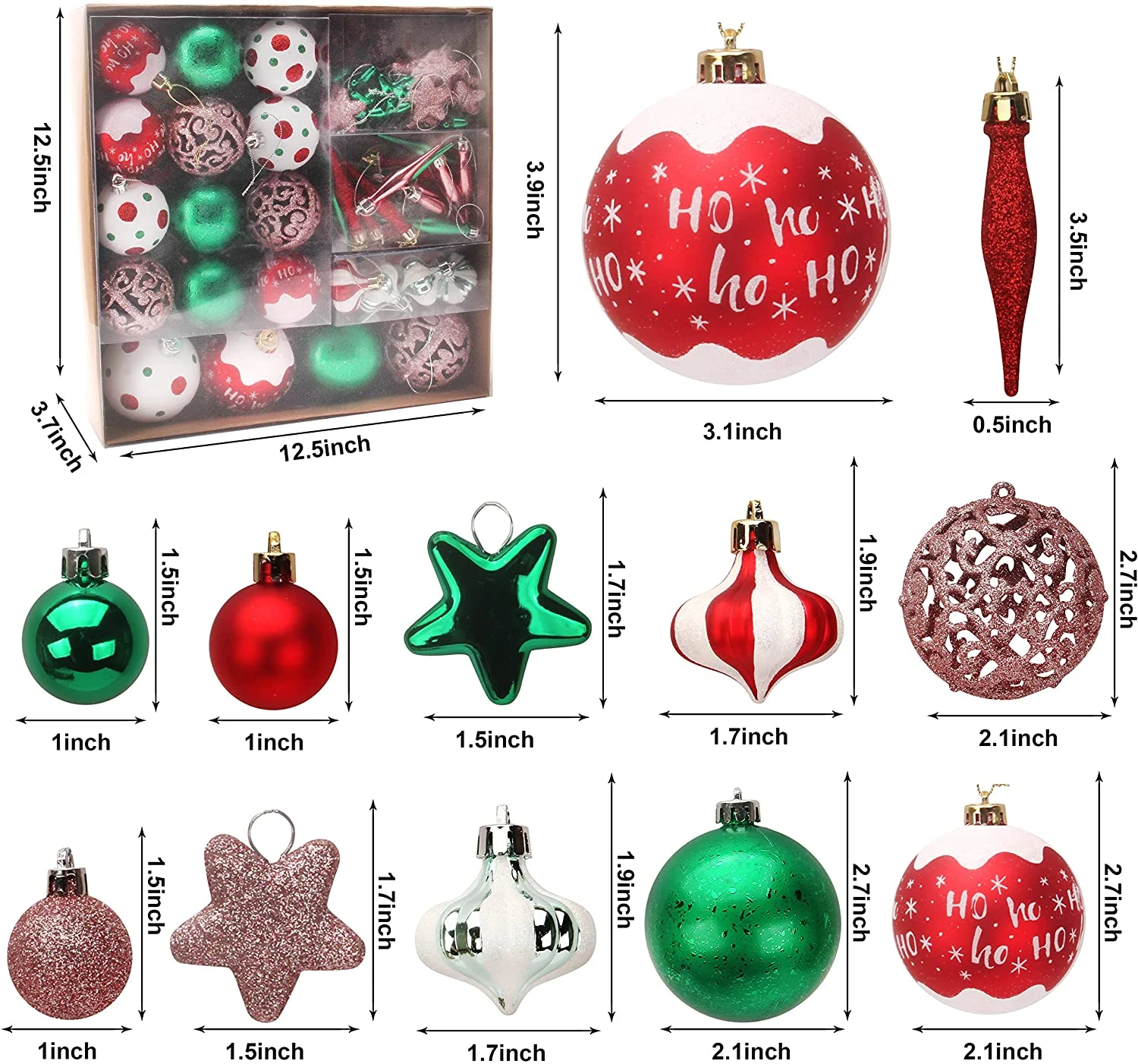 - Our Christmas decoration set includes 76 Christmas ball ornaments. Each color is bright and beautiful and perfect for Christmas