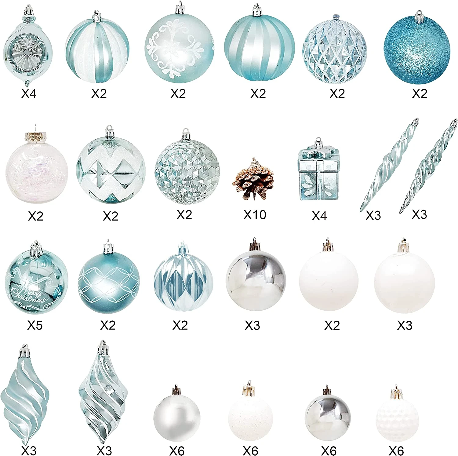 - Our Christmas decoration set includes 87 Christmas ball ornaments. Each color is bright and beautiful and perfect for Christmas decorations!