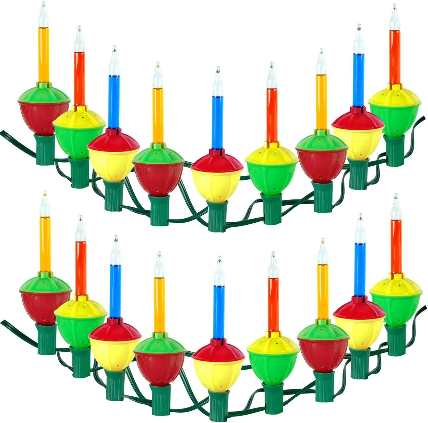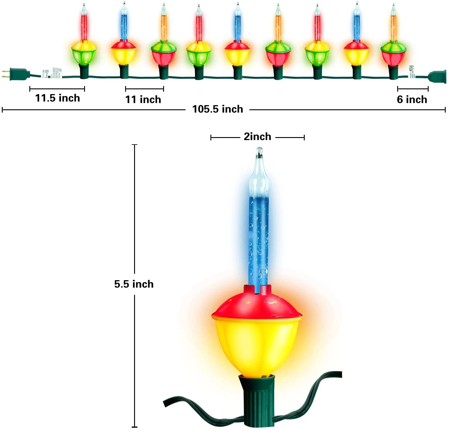 - Our Christmas lights set includes 2 packs of 9-count Multi color Christmas Bubble Incandescent String Lights measuring 8.8 ft long.