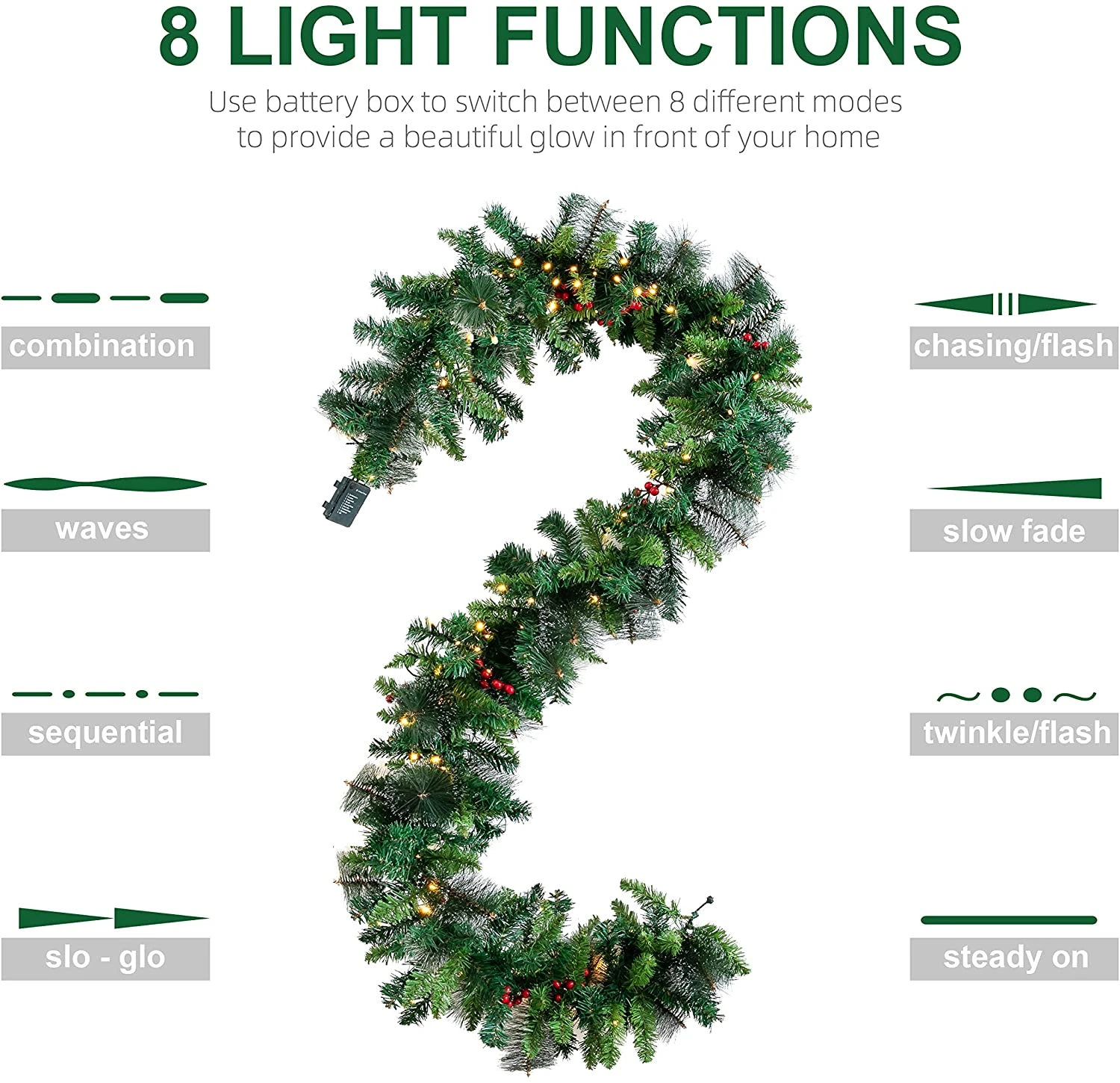 - Light up your home with this great Chrismas Pine Garland pre-lit with 50 warm white clear lights & trimmed with pine cones for the upcoming Christma