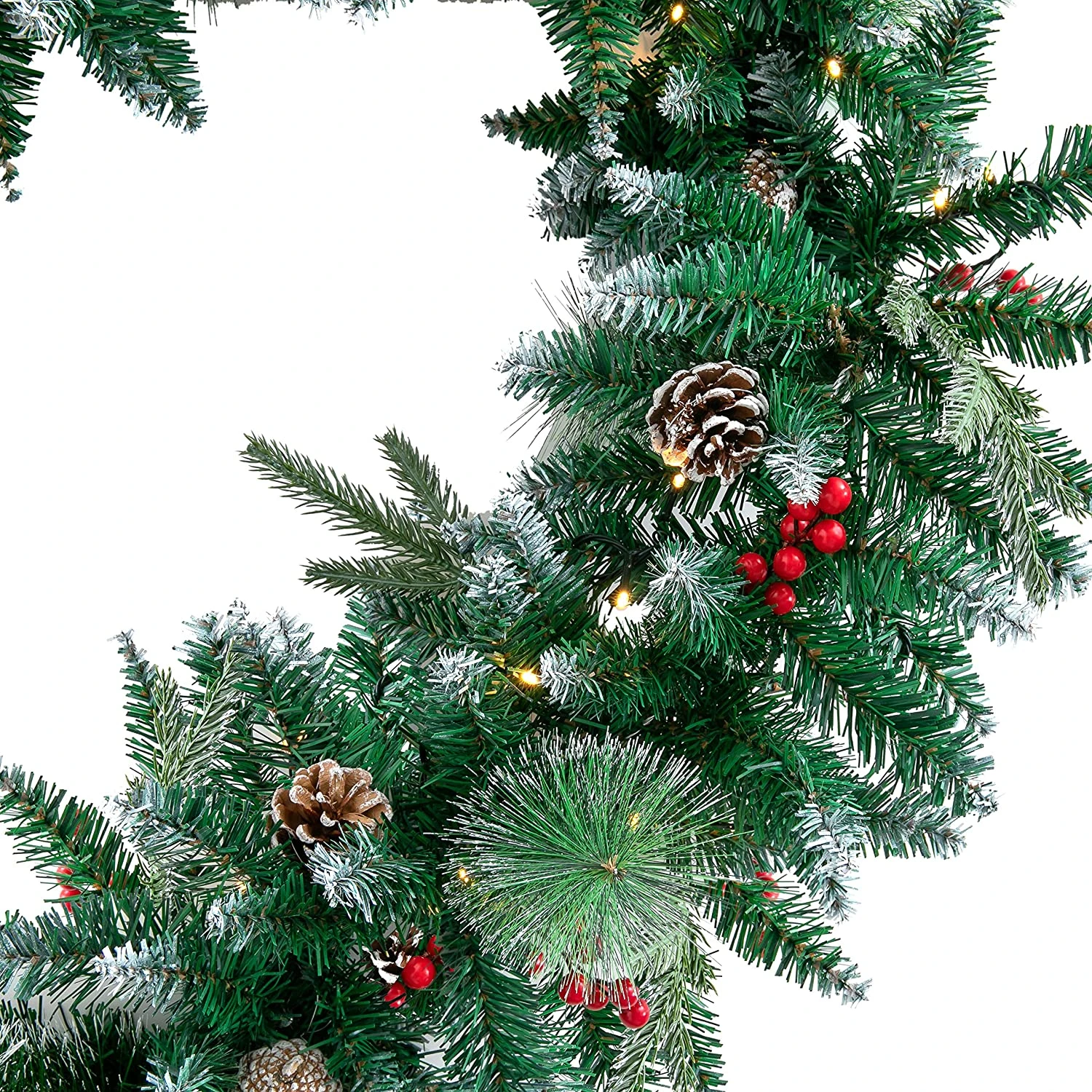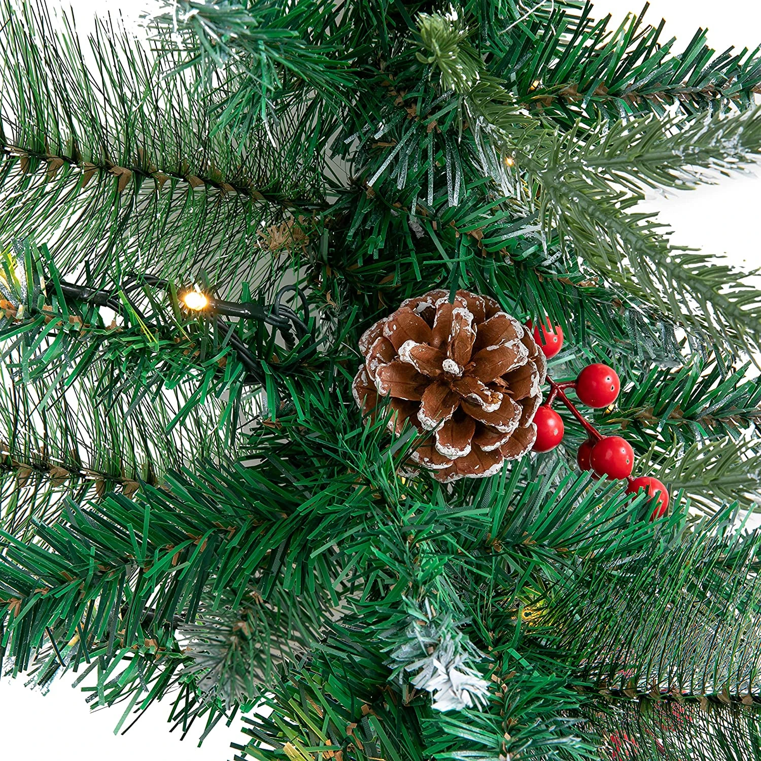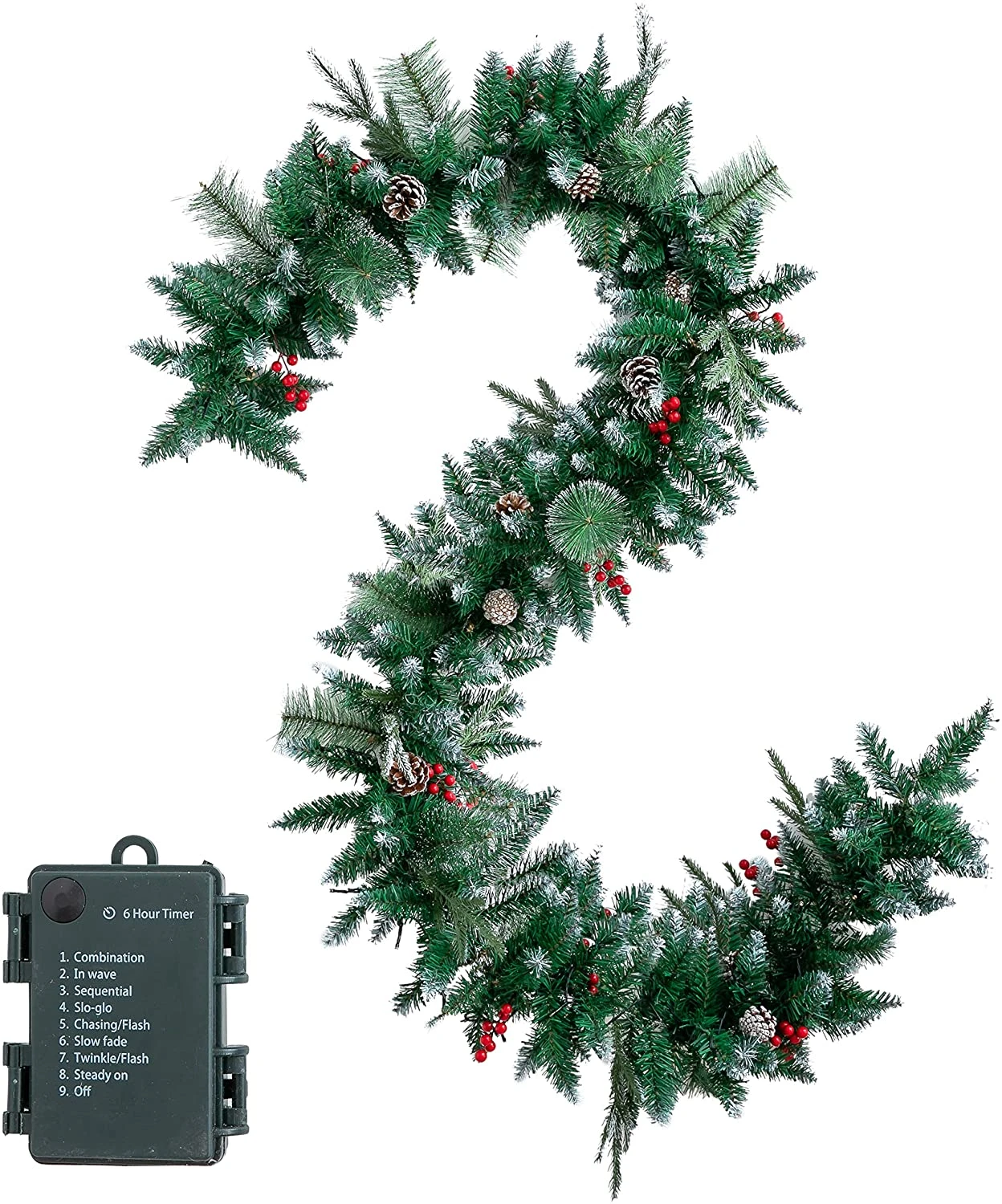 - NATURAL DESIGN: With the various ornaments like snow flock, pine cones & holly berries, Joiedomi prelit garland looks natural and classic
