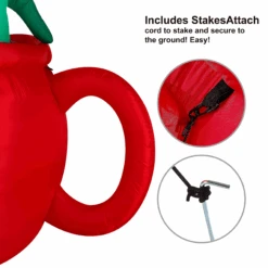 - Dinosaur in a Huge Mug Christmas Inflatable comes with an extended cord, ground stakes, fastened ropes, built-in sandbags, and a plug with UL certification.