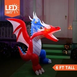 6 FT Tall Halloween Inflatable Sitting Ice Dragon With Globe