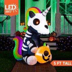 Tall Sitting Skeleton Inflatable Ride A Unicorn Costume (5 Ft)