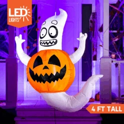 Halloween Tall Three Characters On Pumpkin Inflatable (5 Ft)