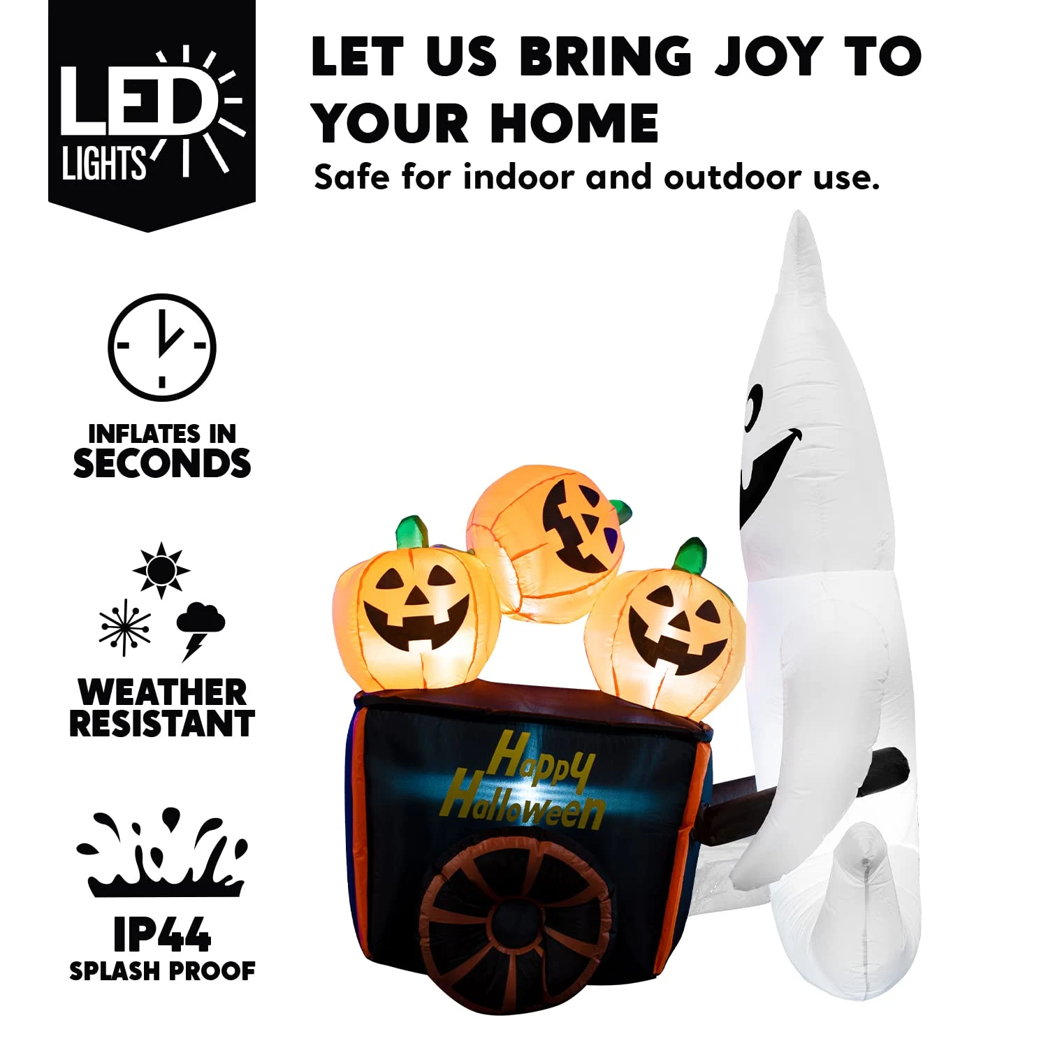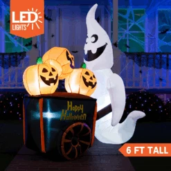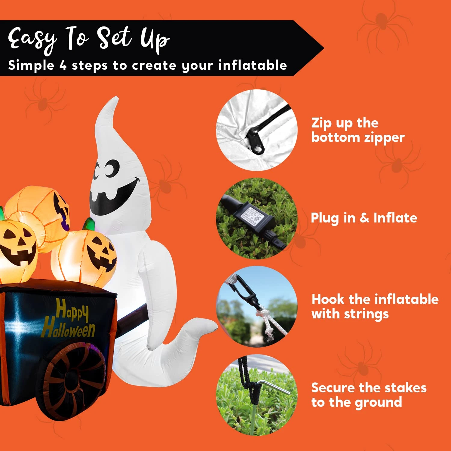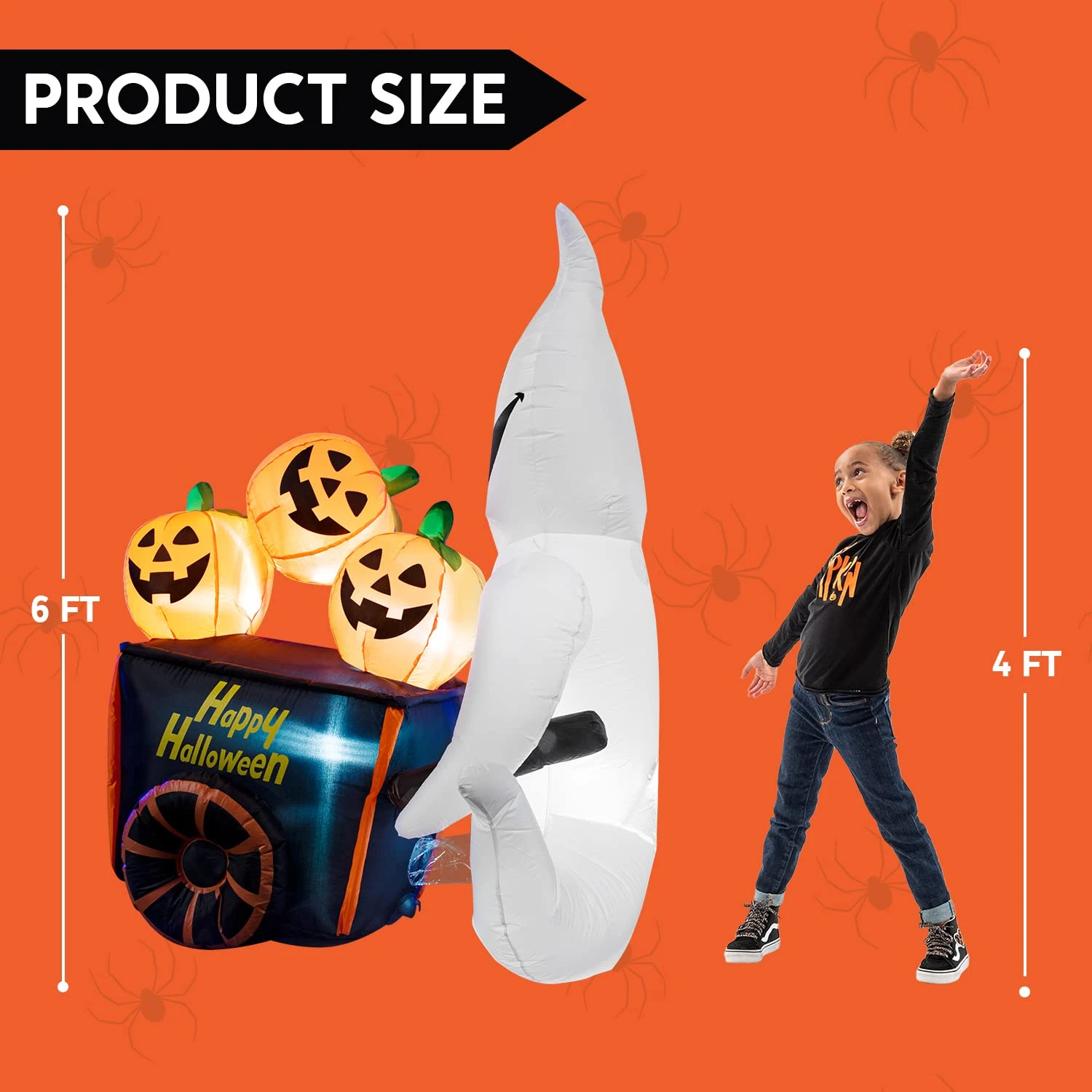 - Our 6ft Tall Ghost Pushing Pumpkin Cart Inflatable. Goofy Spooky Convenient Halloween Holiday Yard Decoration.