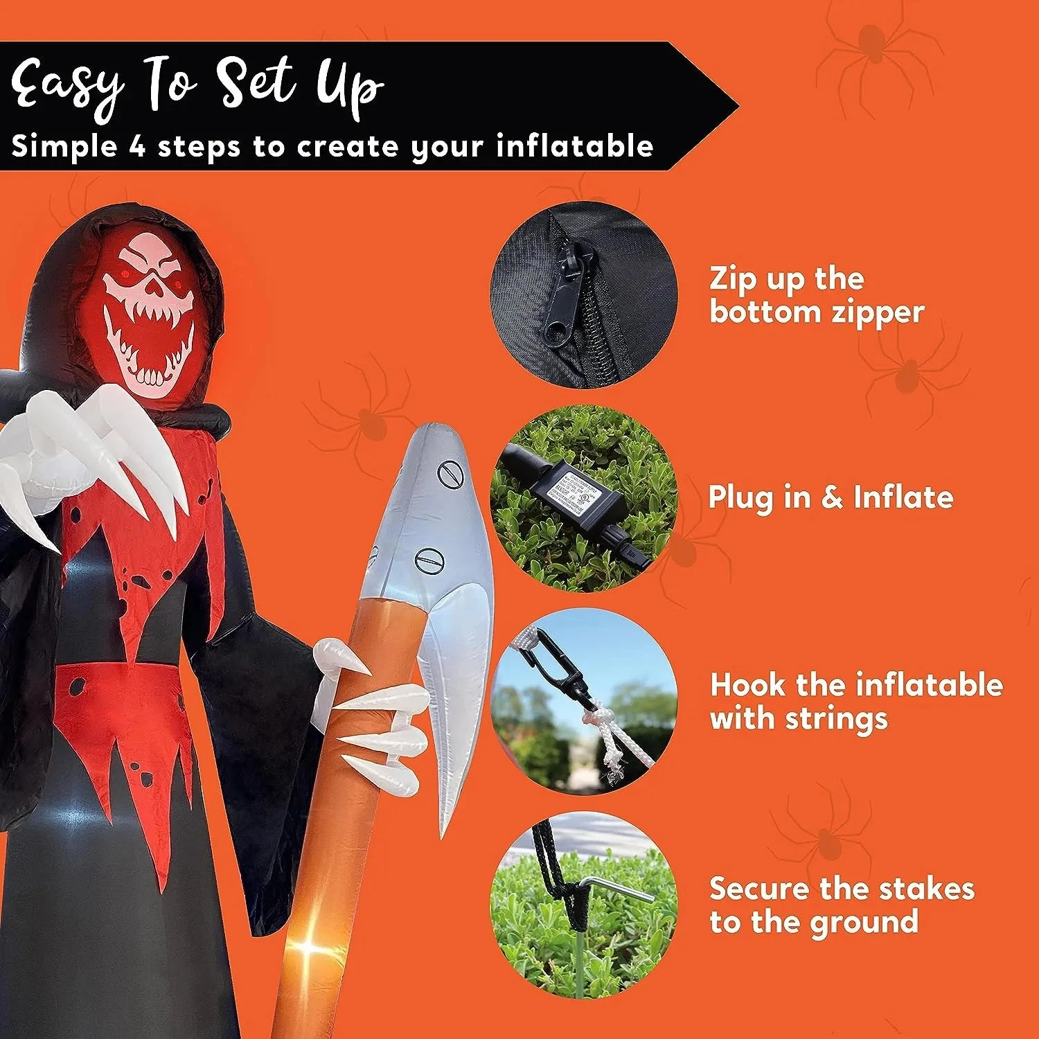 - Ease of Use: Setting up and using this inflatable Grim Reaper is a breeze. It comes with a user-friendly air pump that allows for quick and effortless inflation. With its lightweight design and easy-to-follow instructions, you can easily set it up and take it down without any hassle, making it convenient for seasonal decorations.