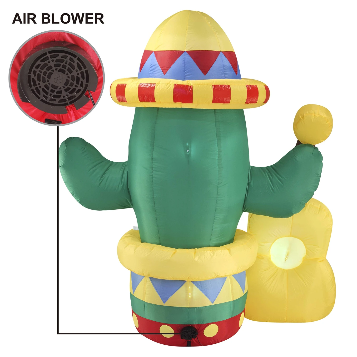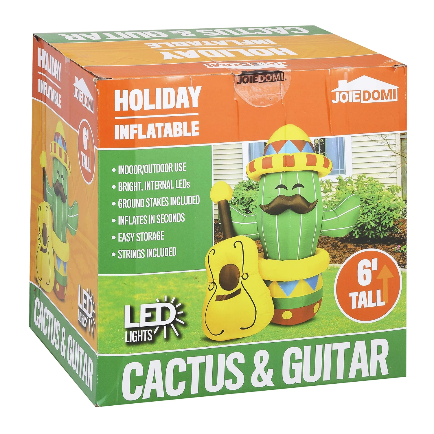 - Super value: 6 feet tall colorful cactus & guitar inflatable comes with an extended cord, ground stakes, fastened ropes, built-in sandbags, and a plug with UL certification.