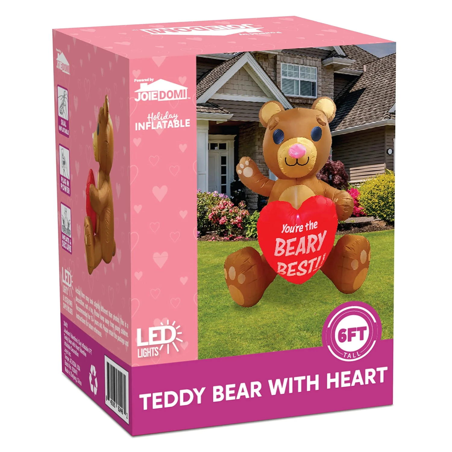 - 6 feet teddy bear with heart valentine inflatable comes with an extended cord, ground stakes, fastened ropes, built-in sandbags, and a plug with UL certification.