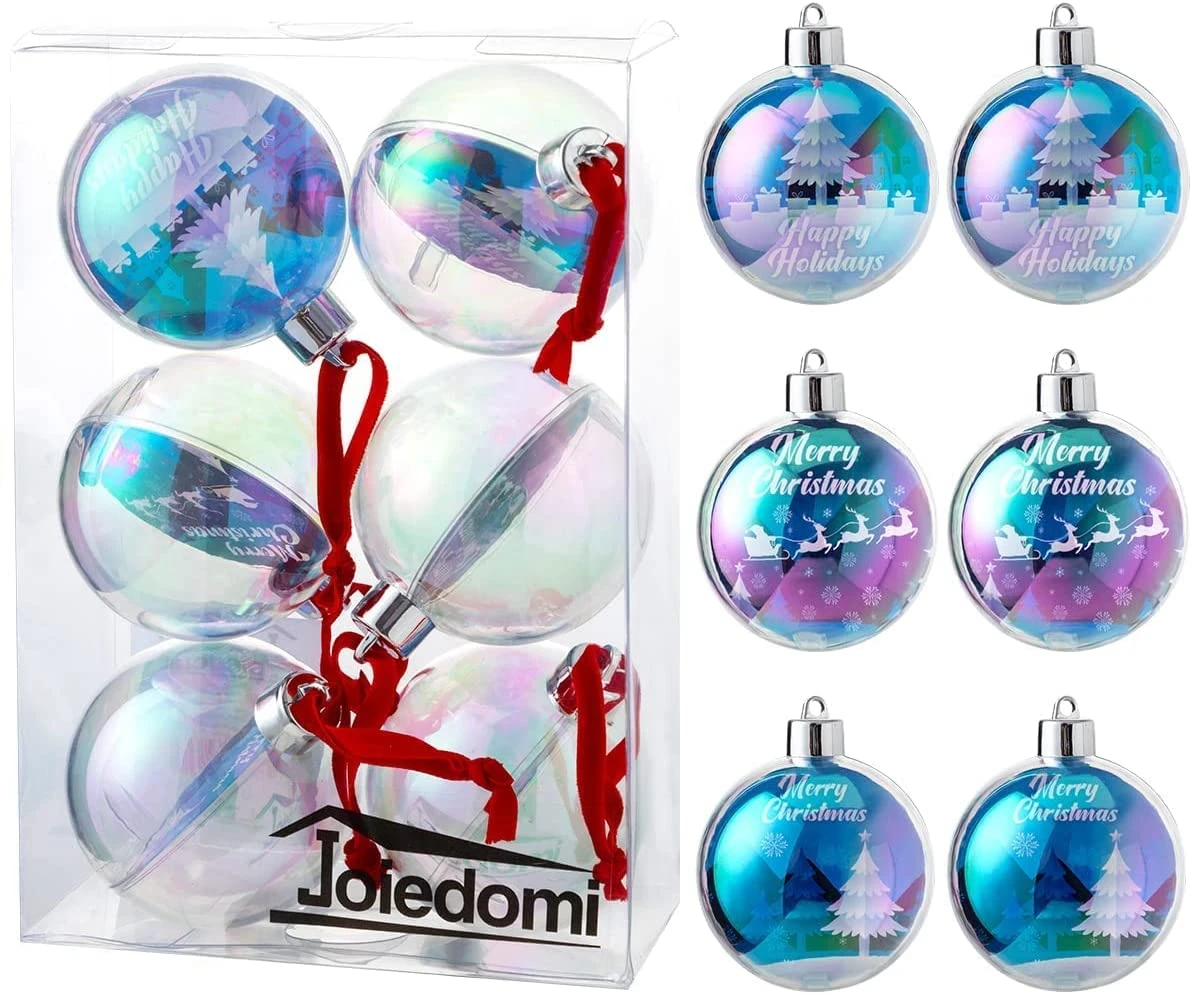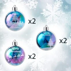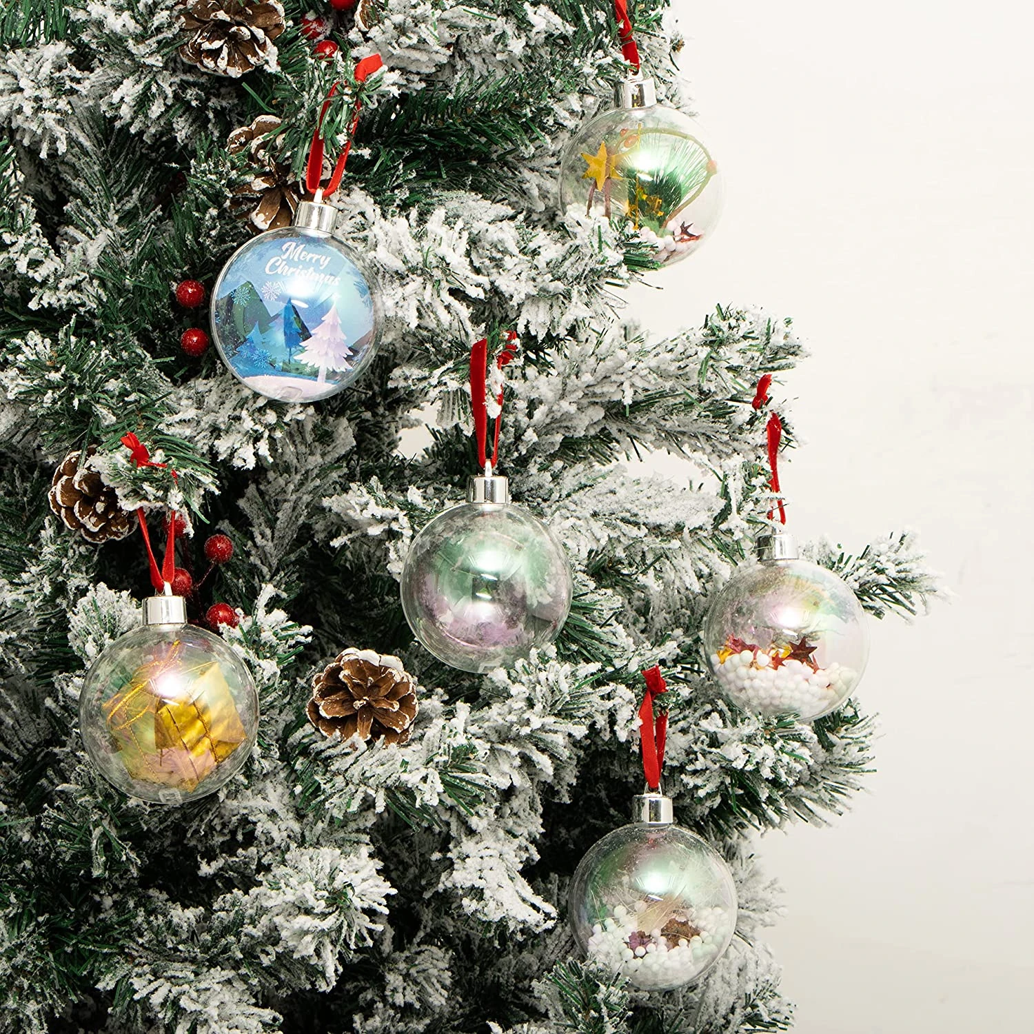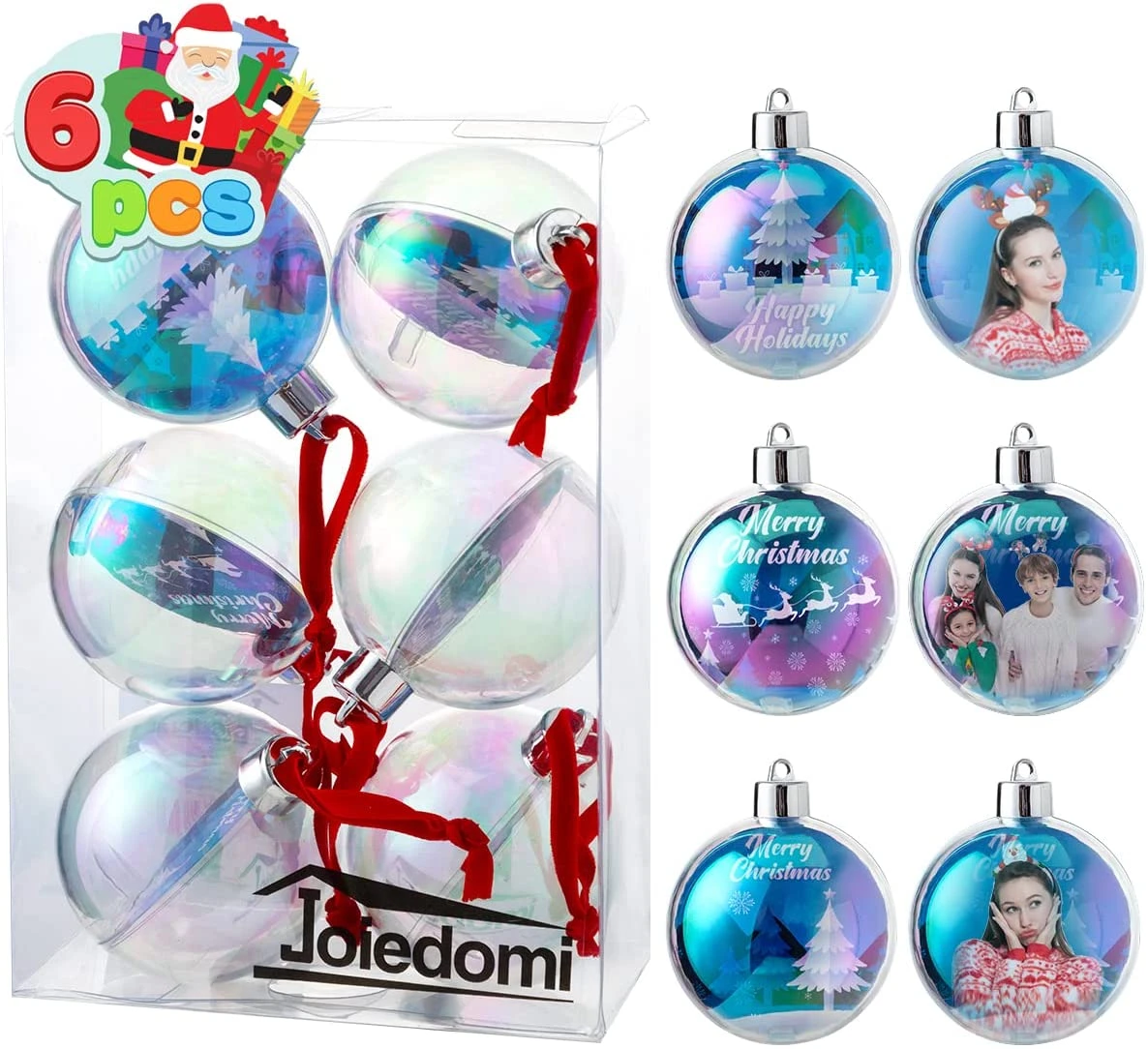 - Our Shatterproof DIY Christmas decorations includes 6 pcs 70mm/2.76″ two-sided clear plastic Christmas ball ornaments. Perfect for indoor and outdoor decorations.